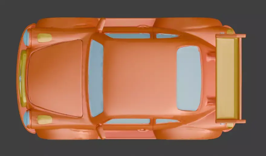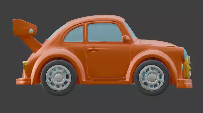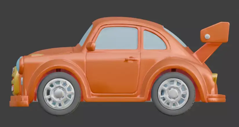 Tags3d model toy car orange sports car stylized vehicle game ready prop plastic texture chunky design kids toy racing car cyan windows rear spoiler glossy finish isolated asset miniature car decorative prop digital sculpture pbr materials playful design diecast style