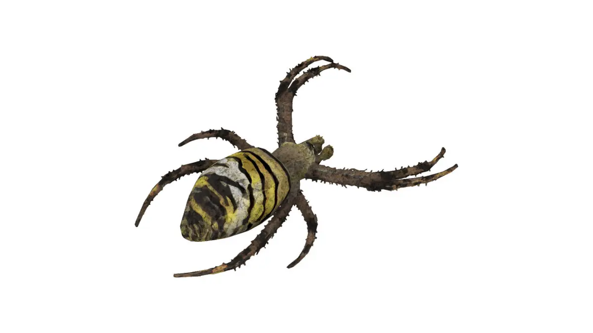This 3D low-poly spider model features a detailed yet minimalist design, capturing the essence of an orb-weaver spider. With its vibrant yellow and black striped abdomen and textured, spindly legs, the model strikes a balance between realism and simplicity, making it ideal for animations, games, or educational visualizations. The low-poly structure ensures efficient rendering while maintaining a visually striking appearance.