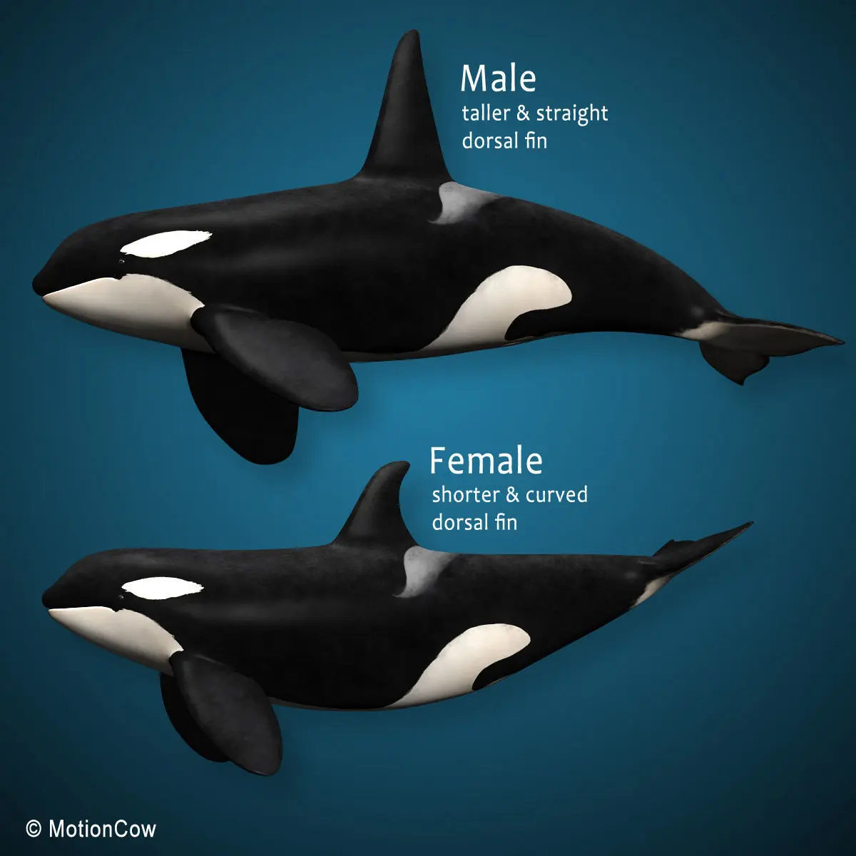 1. Scene includes 3 models: male, female and calf.2. Anatomically and scale accurate. 3. Rigged to do all kinds of actions.4. Models include a loopable swimming animation.5. Optimized and clean model topology that can be further subdivided for high detailed rendering.*6. Fully textured and materials applied.7. High resolution UV texture map of 4096 x 4096. 8. Mouth, eyelids and blowhole opening/closing can be controlled by morph targets. Bones can also control the mouth and tongue, set-up appropriately in all 3D applications.