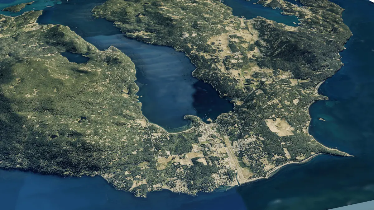 3d model landscape of Orcas Island, San Juan Islands, Pacific Northwest, Washington, USA.