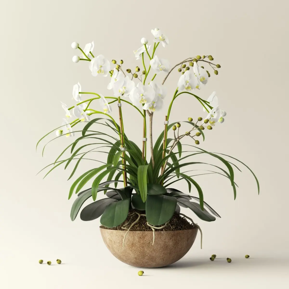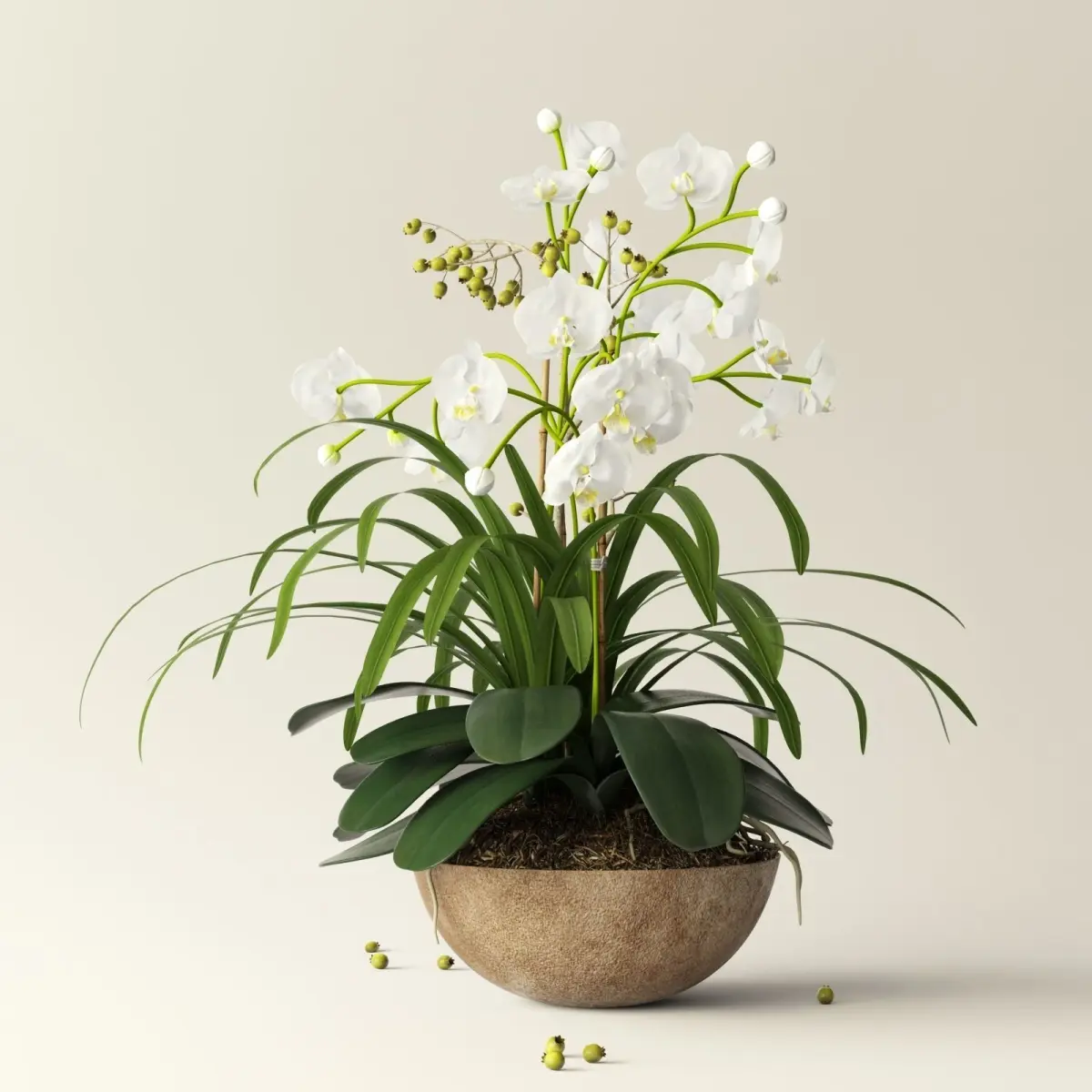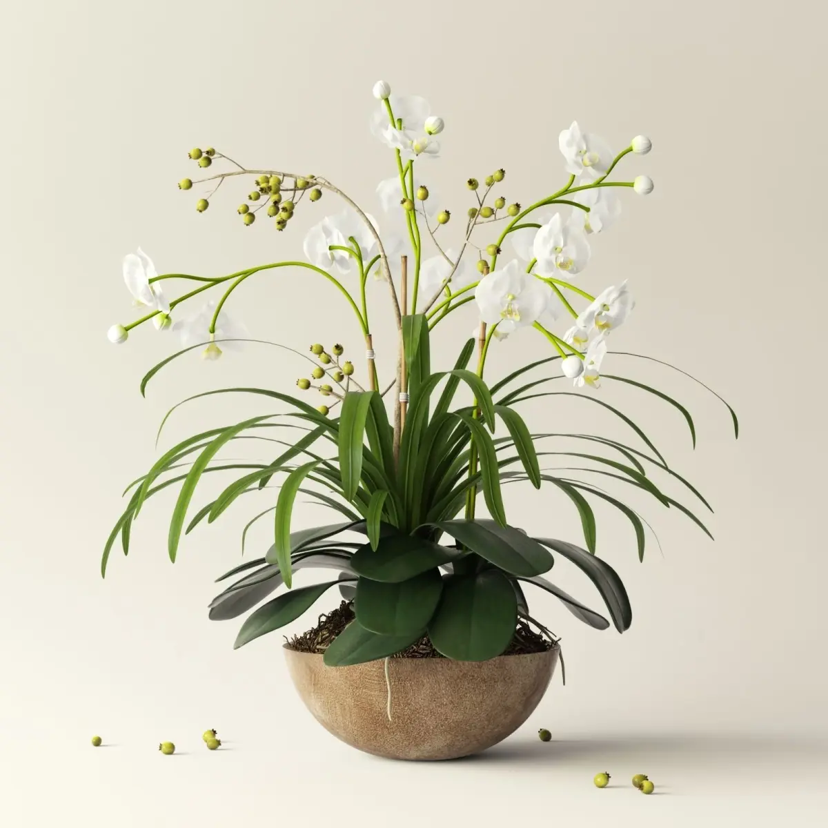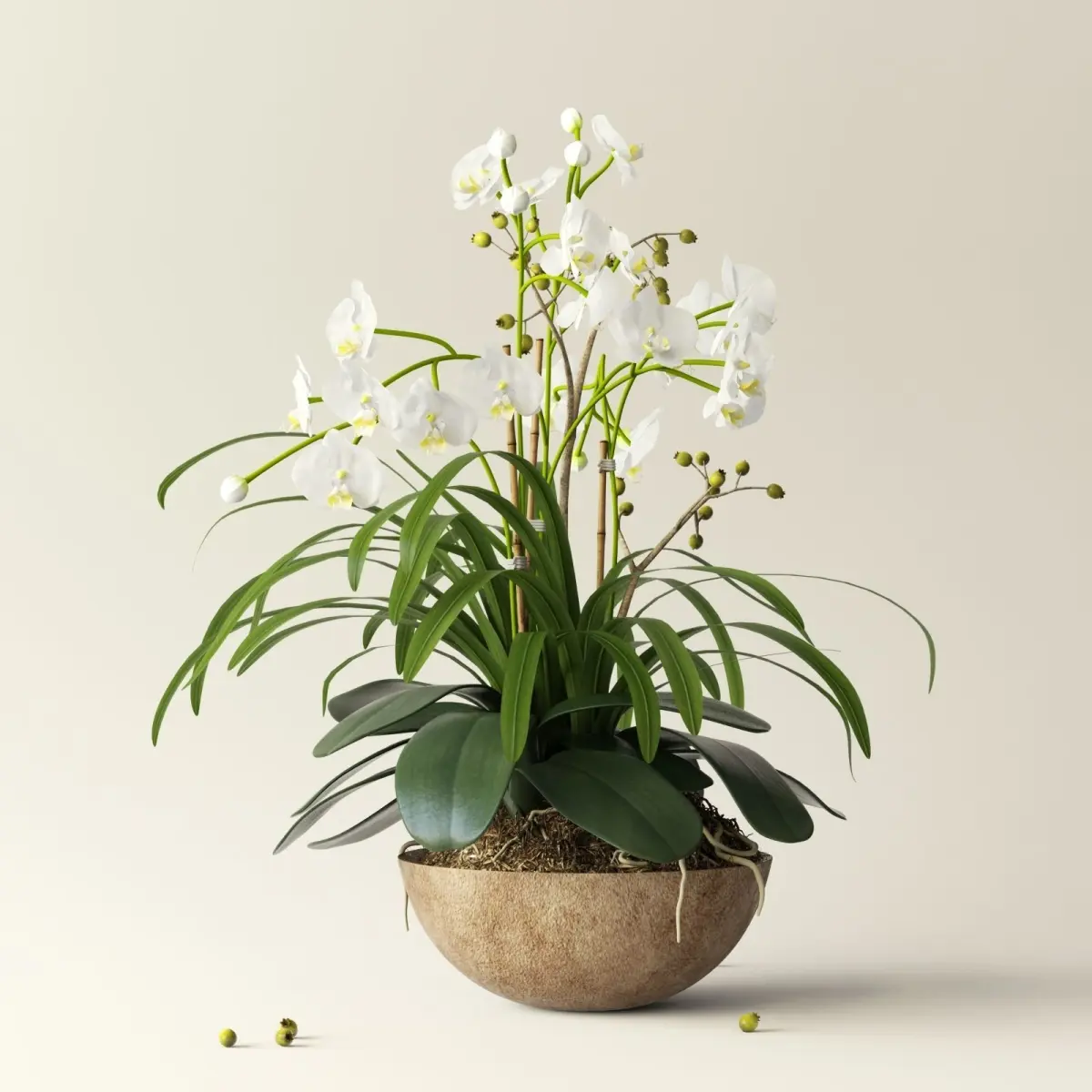 orchid 2 in wooden pot 3D model
