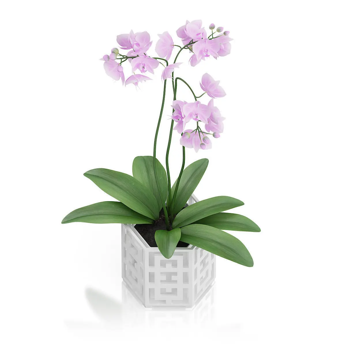 Orchid Flower in Hexagonal Pot 3D model