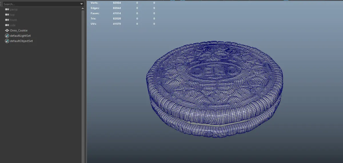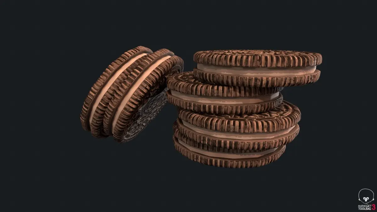 An Oreo cookie made for a practice could work for renders it has 82004 verts 41014 polys and 82028 tris the textures 2048 X 2048 and are PBR Diffuse, Metal, Roughness and Normal Map if you need game assets or STL files I can do commission works.