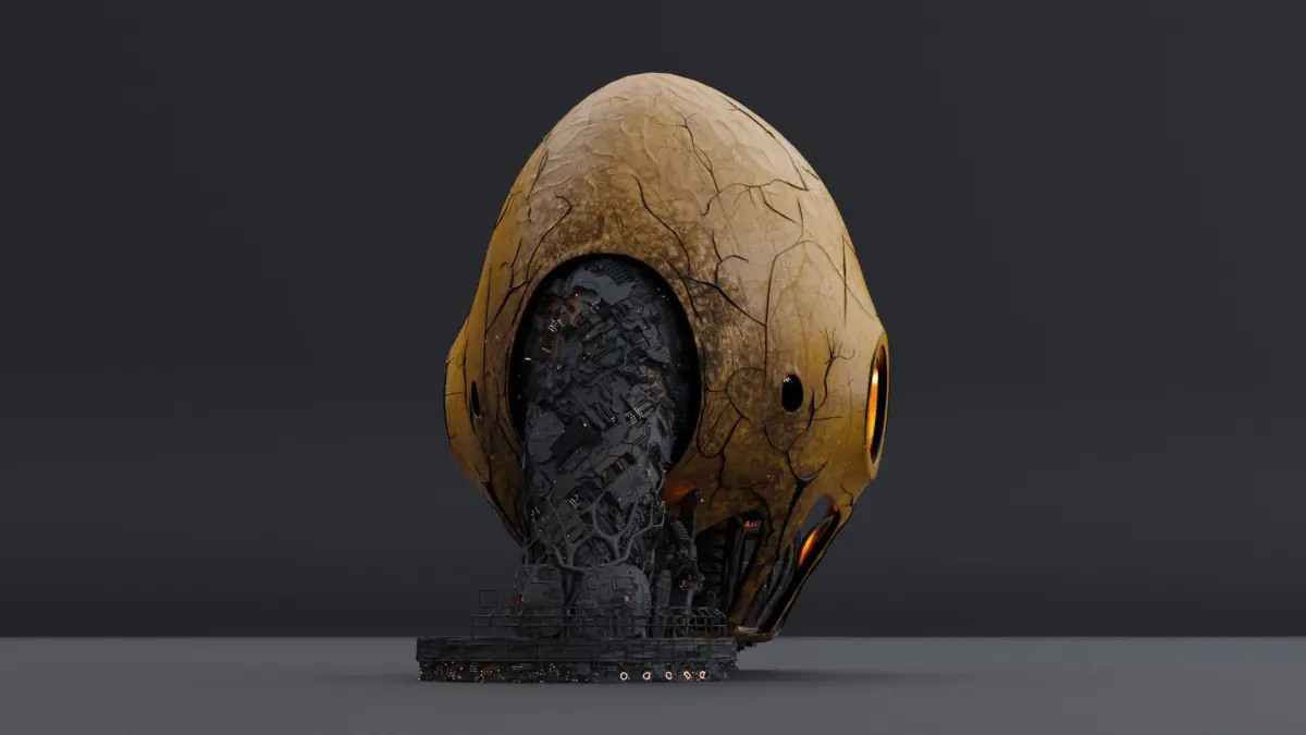 A set of organic alien architecture models.