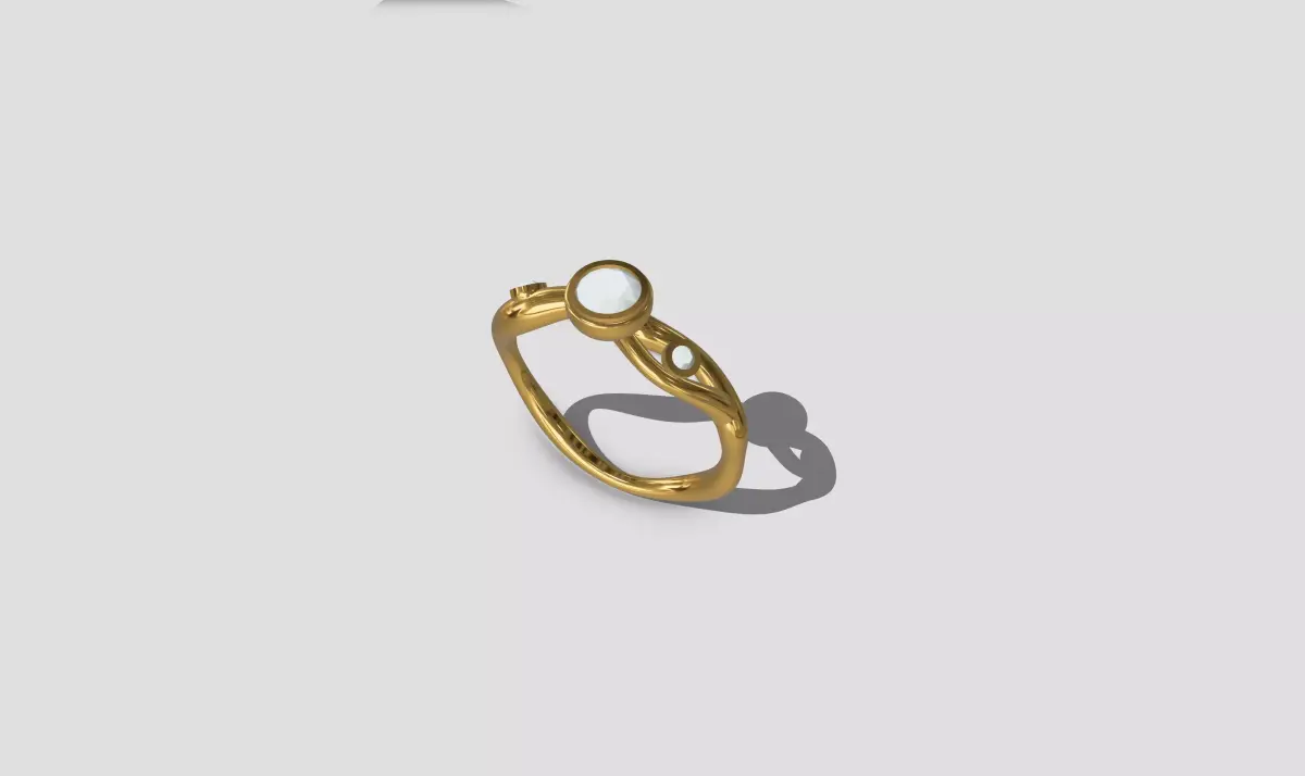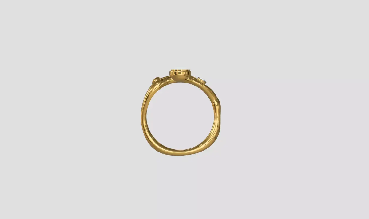 High-quality 3D printable jewelry ring model with an organic twisted band and bezel-set stones.