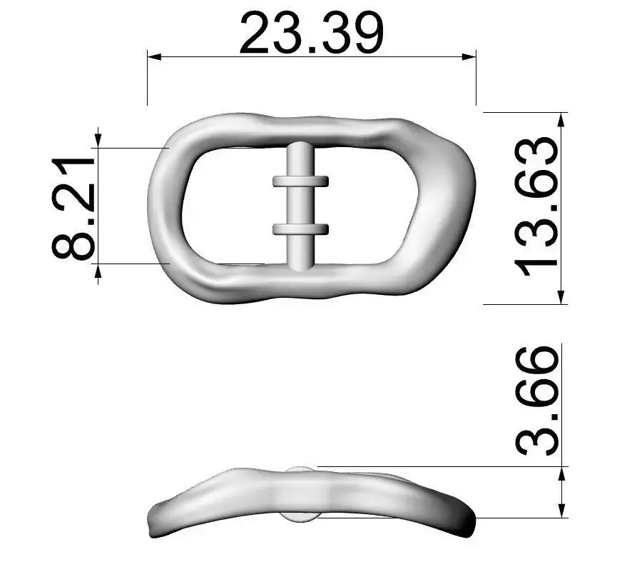 A refined organic-style buckle designed for luxury footwear and high-end fashion accessories.Modeled with precision in Rhinoceros 3D, this piece combines smooth, flowing curves with functional proportions, resulting in a timeless and sophisticated design.