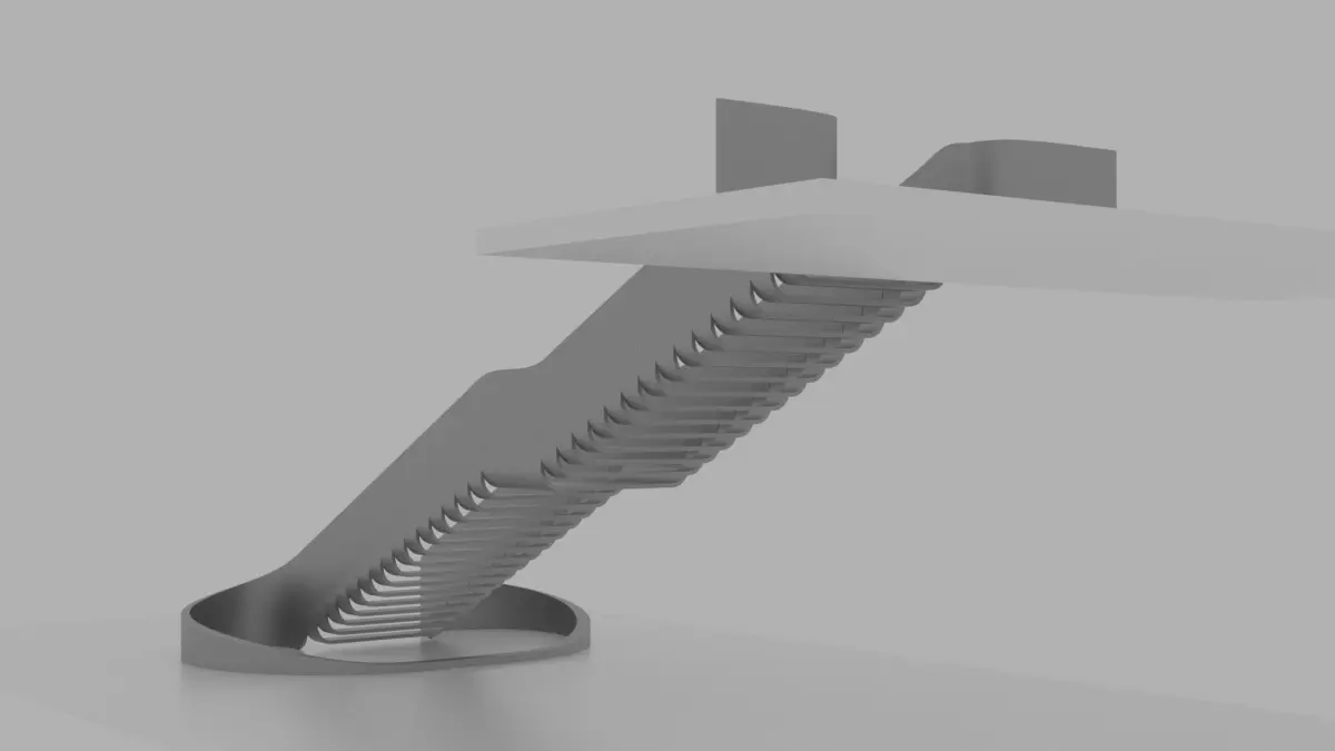 A Staircase structure with a Parametric form, these stairs has a unique design that adds a futuristic scifi vibes to the architectural atmosphere, it has smooth steps with curved fluid edges merged with the side wall handrails, the model was created using computational parametric tools to achieve the most accurate geometry with clean details, it could be used for architectural render purposes indoors, and also for decorations.