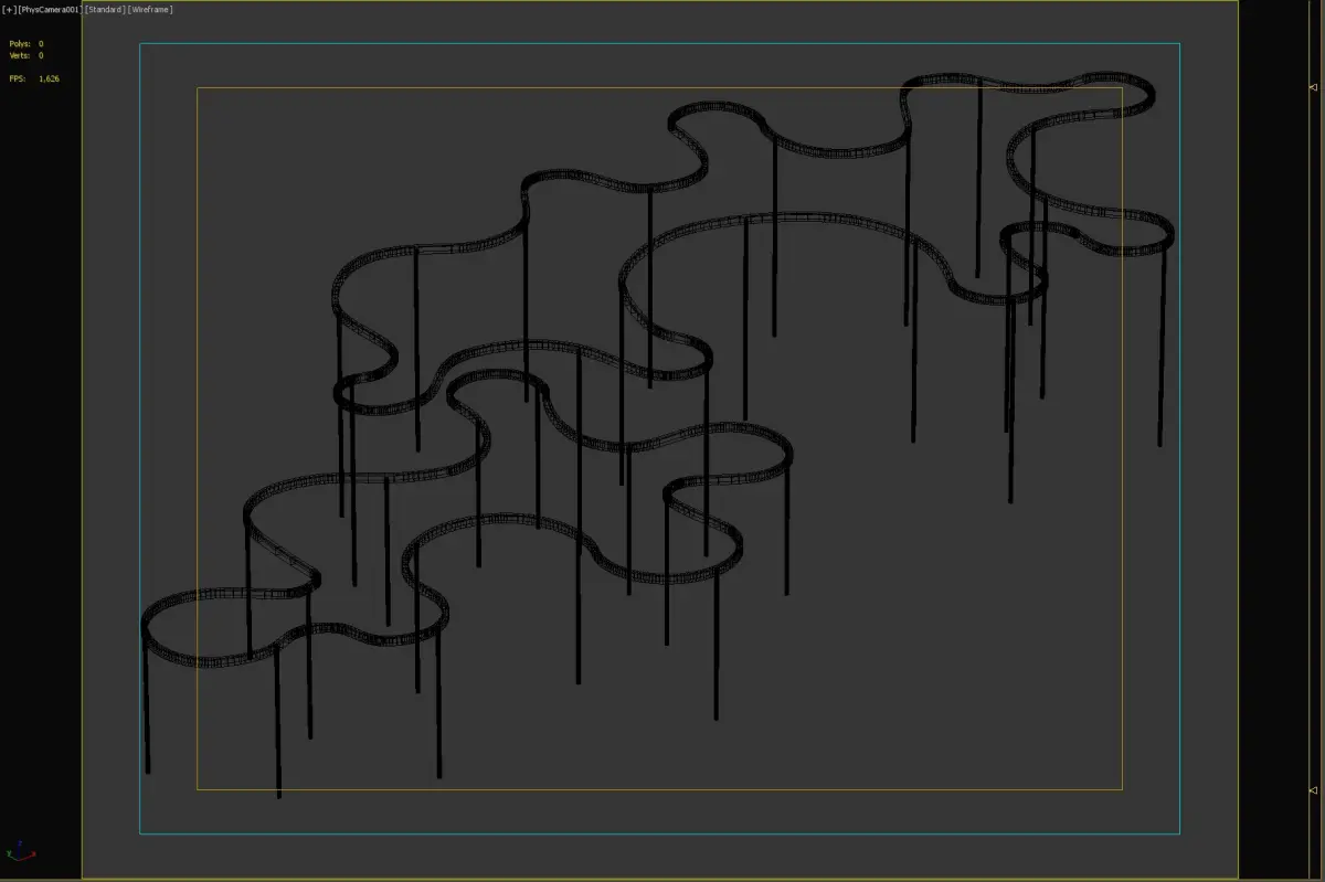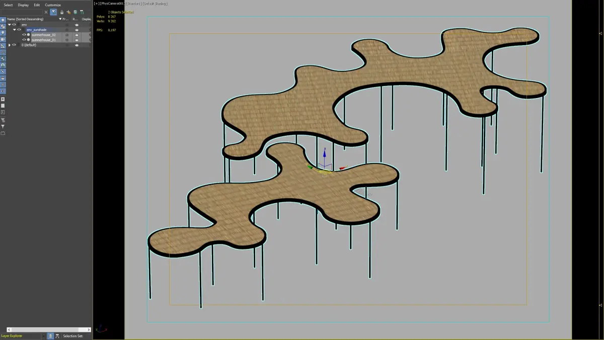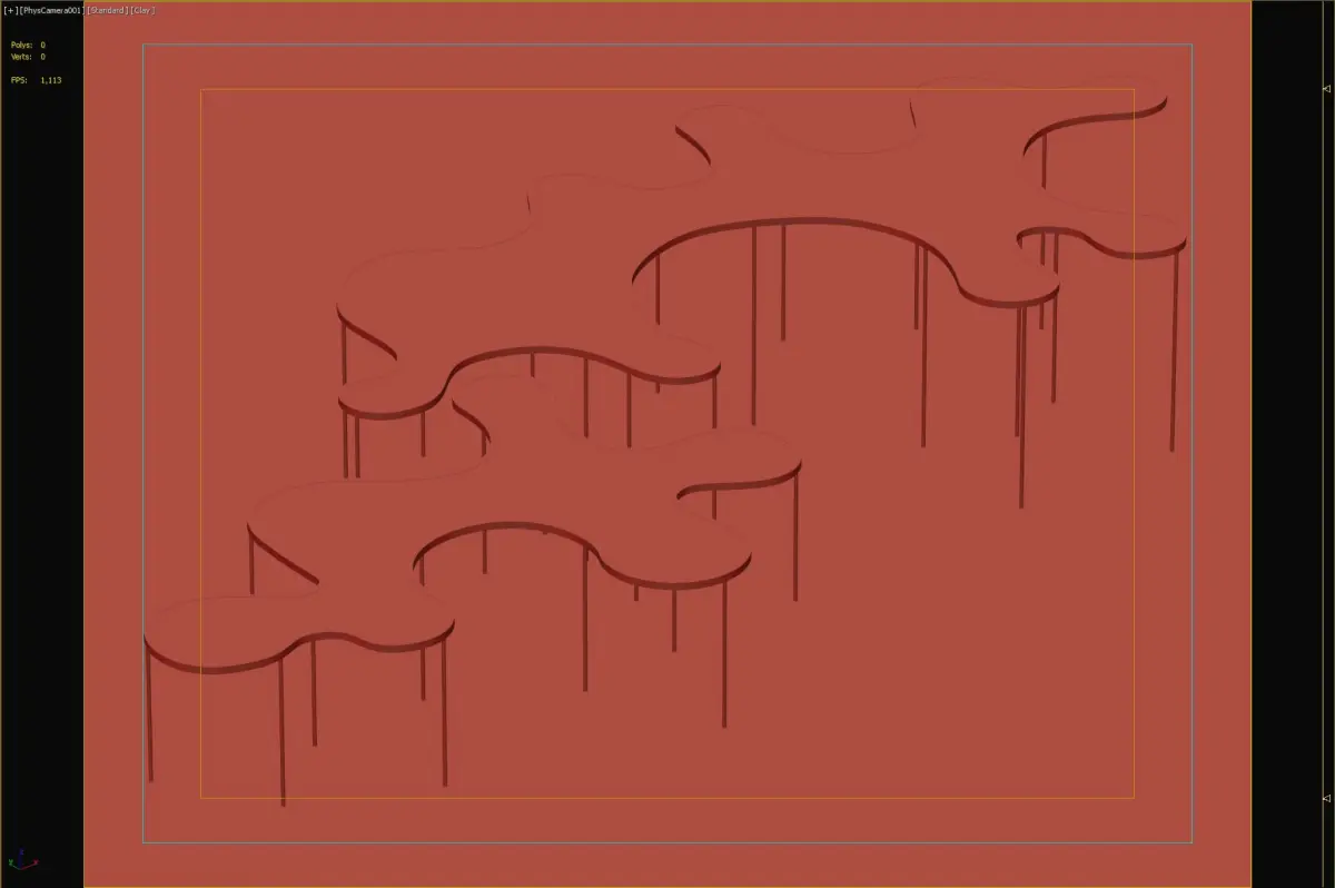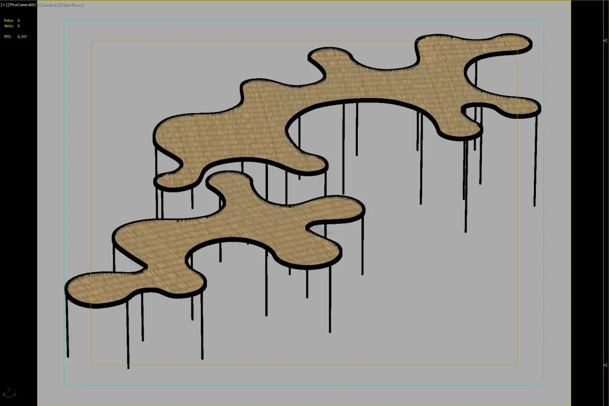 A stylish outdoor canopy featuring flowing organic shapes and wooden decking. Ideal for modern parks or outdoor relaxation areas.