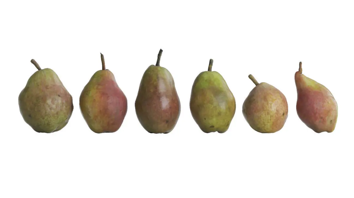 Photorealistic, high-quality and accurate 3d model of organic pears in large terracotta bowl from H&M home based on photogrammetry scanned high poly geometry.