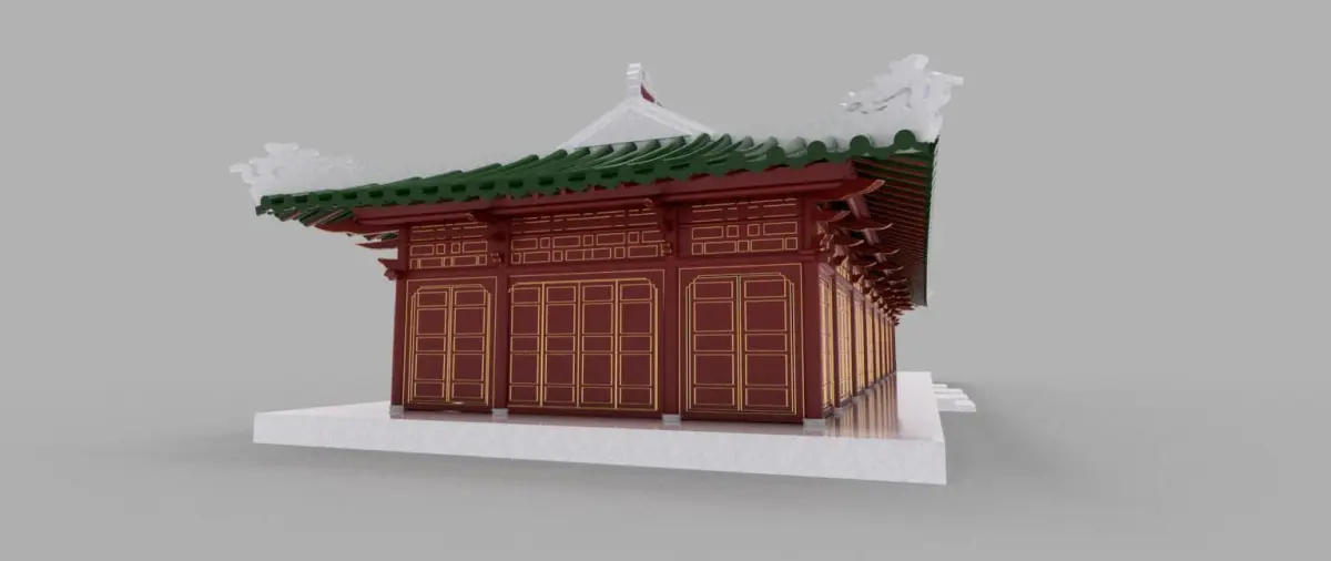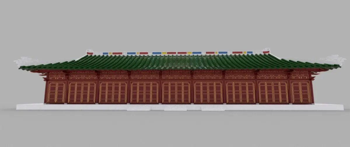 A palace hall with all architectural elements true to the typical Vietnam and Oriental style. The pillars are lacquered red while the tiles are turquoise glazed. The doors and walls are gilded. Eaves are decorated with dragon motifs. A Palace hall is where Asian emperors give audience to his trusted advisors and foreign embassadors. This is where the most solemn ceremonies take place.
