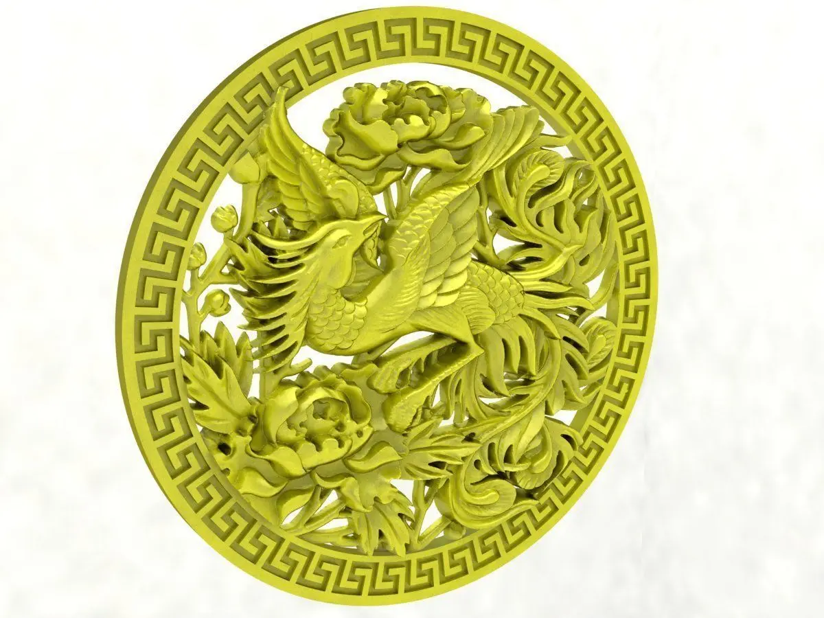 This 3D jewelry model features an oriental round medallion pendant design inspired by the traditional Chinese dragon motif. The dragon is sculpted in high relief with flowing details, symbolizing power, prosperity, protection, and good fortune in Eastern culture.