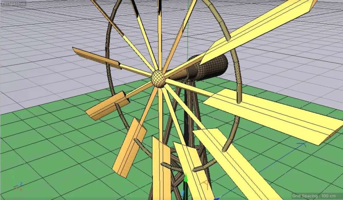 Origami animated windmill made by Cinema 4D R18 spinning around, you can change focal length to appear so high,
