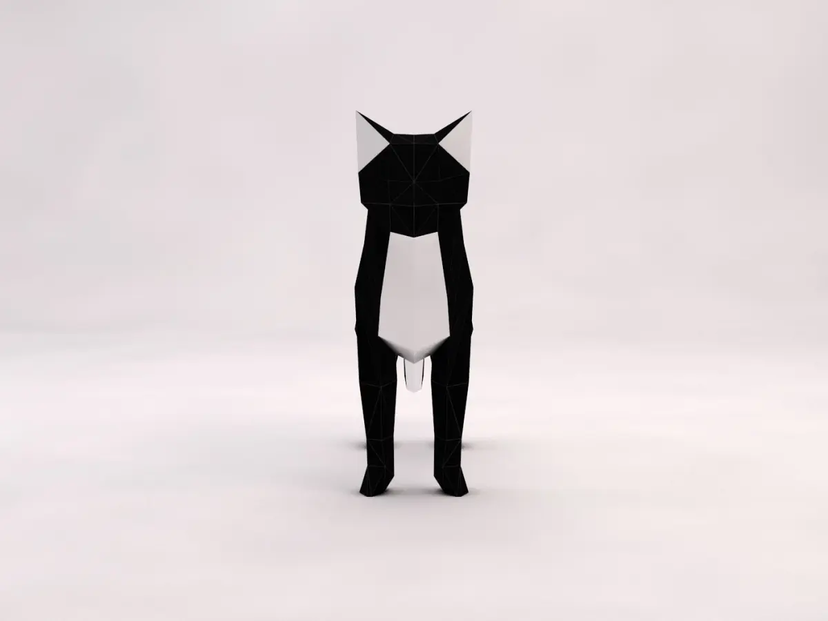 There is one mesh of a very lowpoly cat and only one shader optimized for PBR with five maps (DIFF, REFL, GLOSS and NORM).