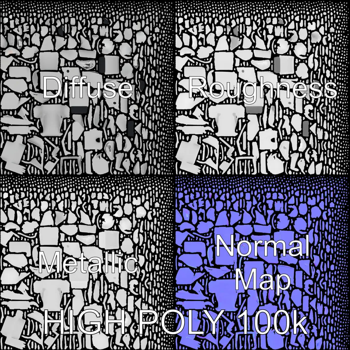 The model features PBR textures (Diffuse, Normal Map, and Reflection/Roughness/Metallic) compatible with modern rendering engines such as 3ds Max, Maya, Cinema 4D, and Blender. All textures are 4096x4096 pixels, ensuring high-quality detail. The UV mapping is precise with no overlapping, providing easy application of textures.