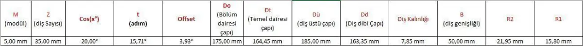 Dişli Çark üniversite ödevi. Orijinal boyut. 35 dişli 5mm lik.