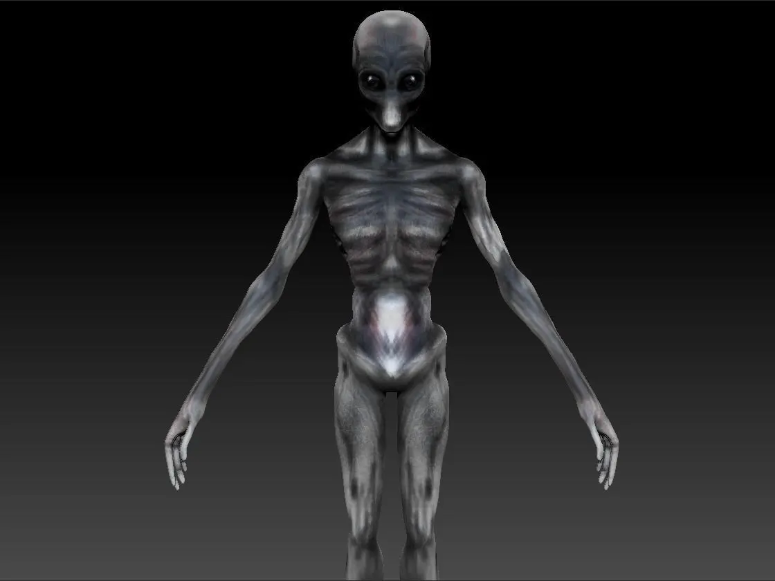 The model is a fictional reconstruction based on the identikits of Gray aliens from Orionand their camuflages capabilities.