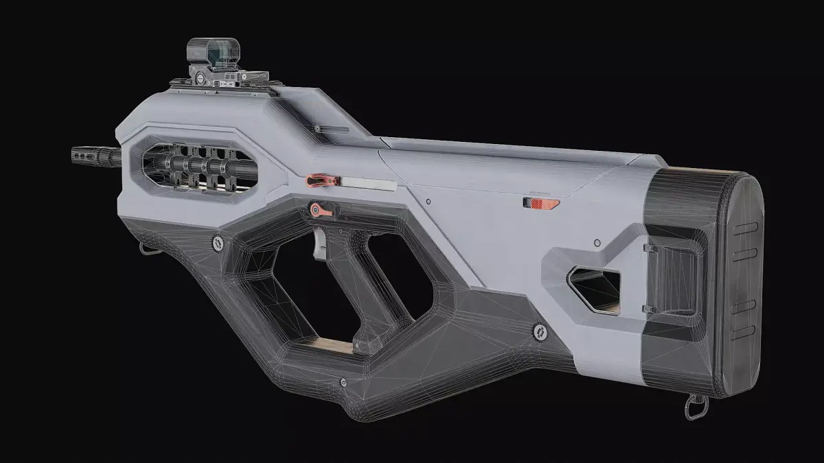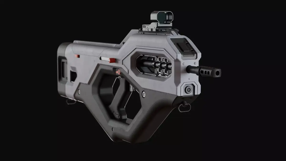 A high-quality, futuristic submachine gun Orion, designed for modern FPS and sci-fi games. This model features a compact, ergonomic design with integrated optics, perfect for cyberpunk or space-themed environments.