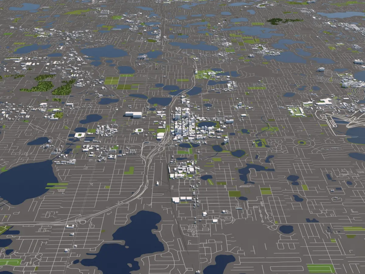 A DETAILED 3D MODEL CITY MAP OF ORLANDO, USA: