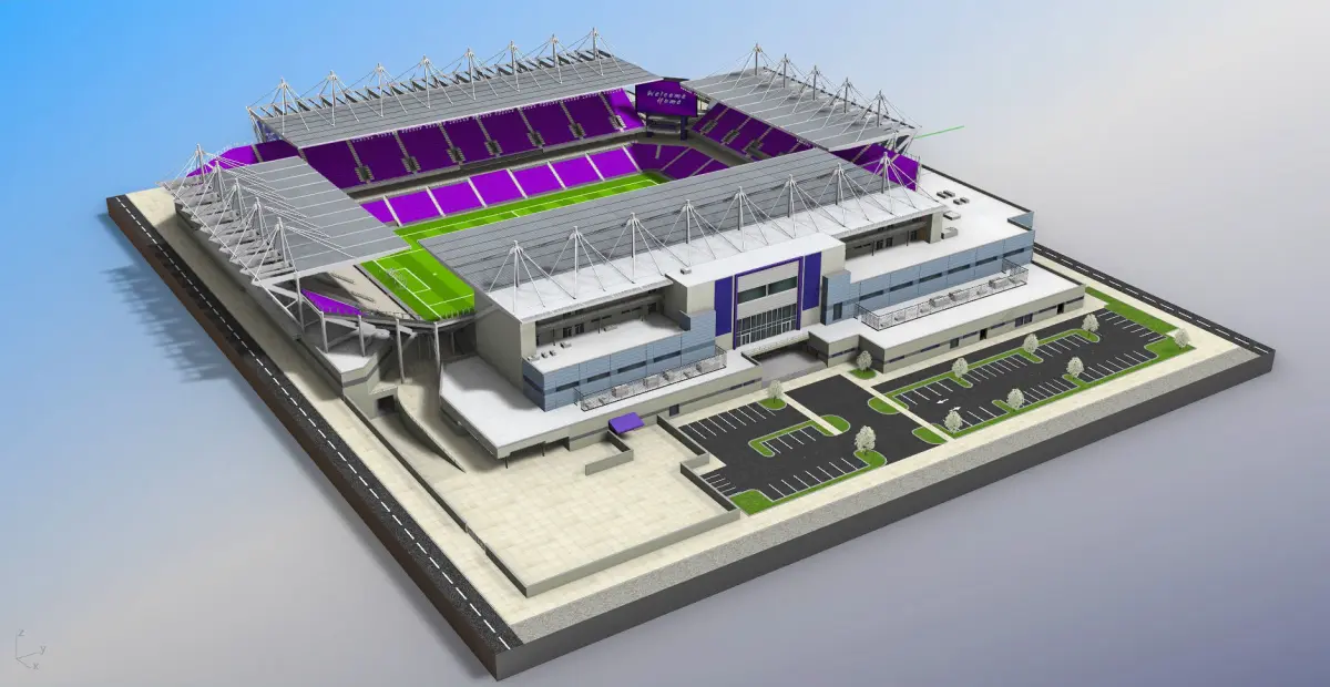 The 3D model is based on photos references of the real world Orlando City Stadium . It was created with approximate dimensions.