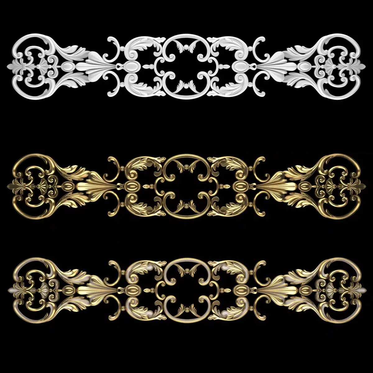 - *Ornament modeling is done with 3D Max software- -Material processing is done with two rendering engines : Corona and vray- *Is the 2016 project file version- *Files in the project: 3dsmax + Corona-3dsmax + Vray +Obj + Mtl- Name: Ornament 108- Version: 2016- Units: Centimeters- Dimensions: 154*31*3cm- Reset XForm: Yes- Formats: 3Ds Max 2016 - Vray + Corona- Poly: 268/976- Vertex: 277/496- - 3 Mtl: Gold + Gypsum + Blend