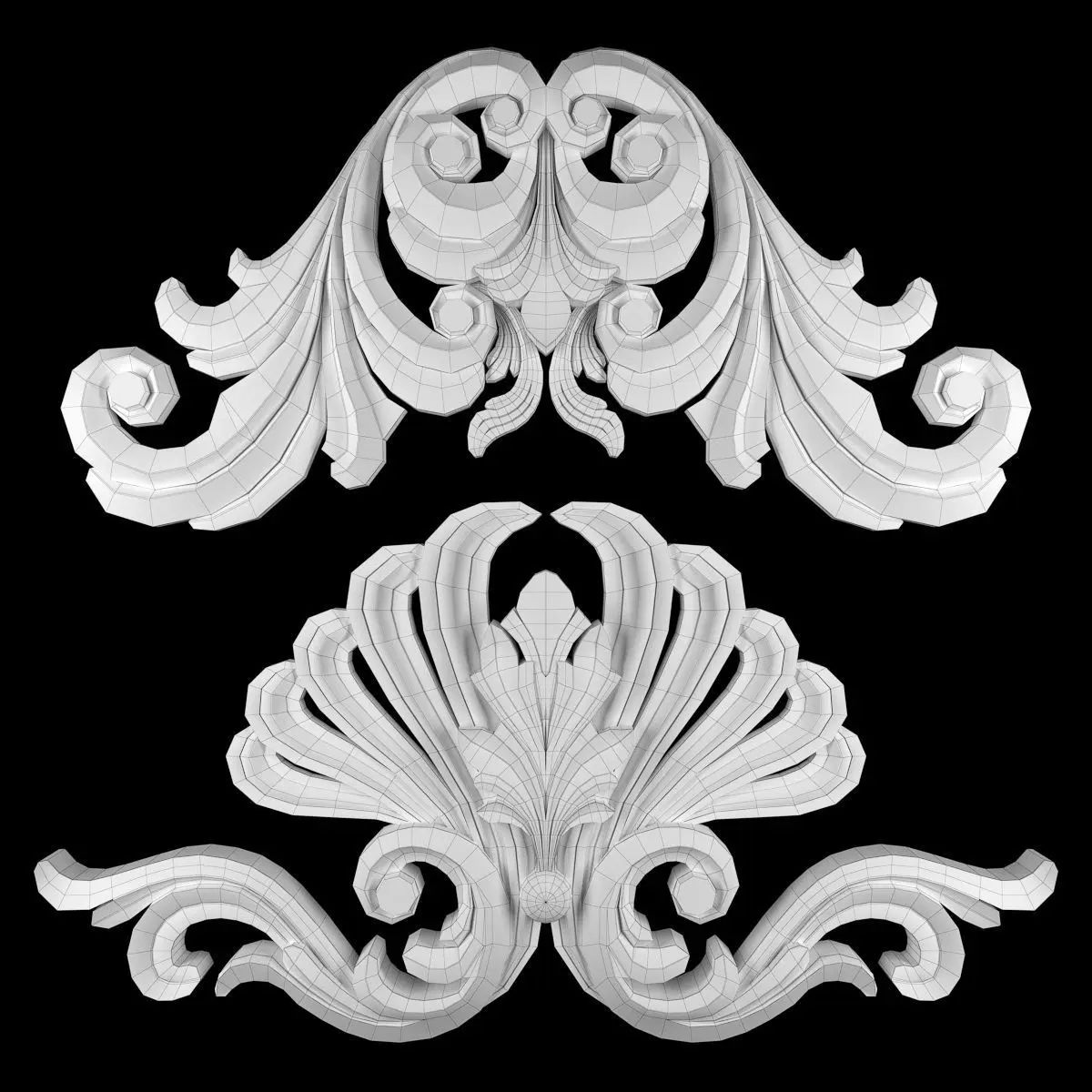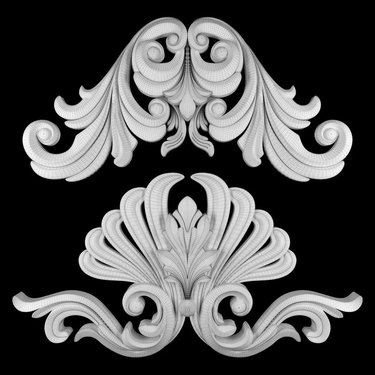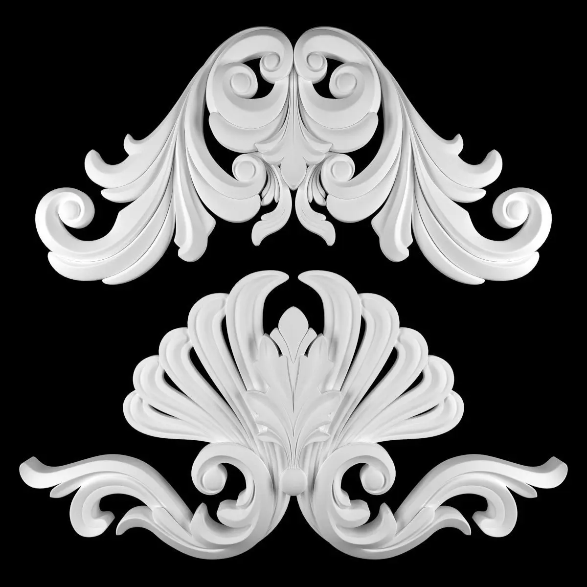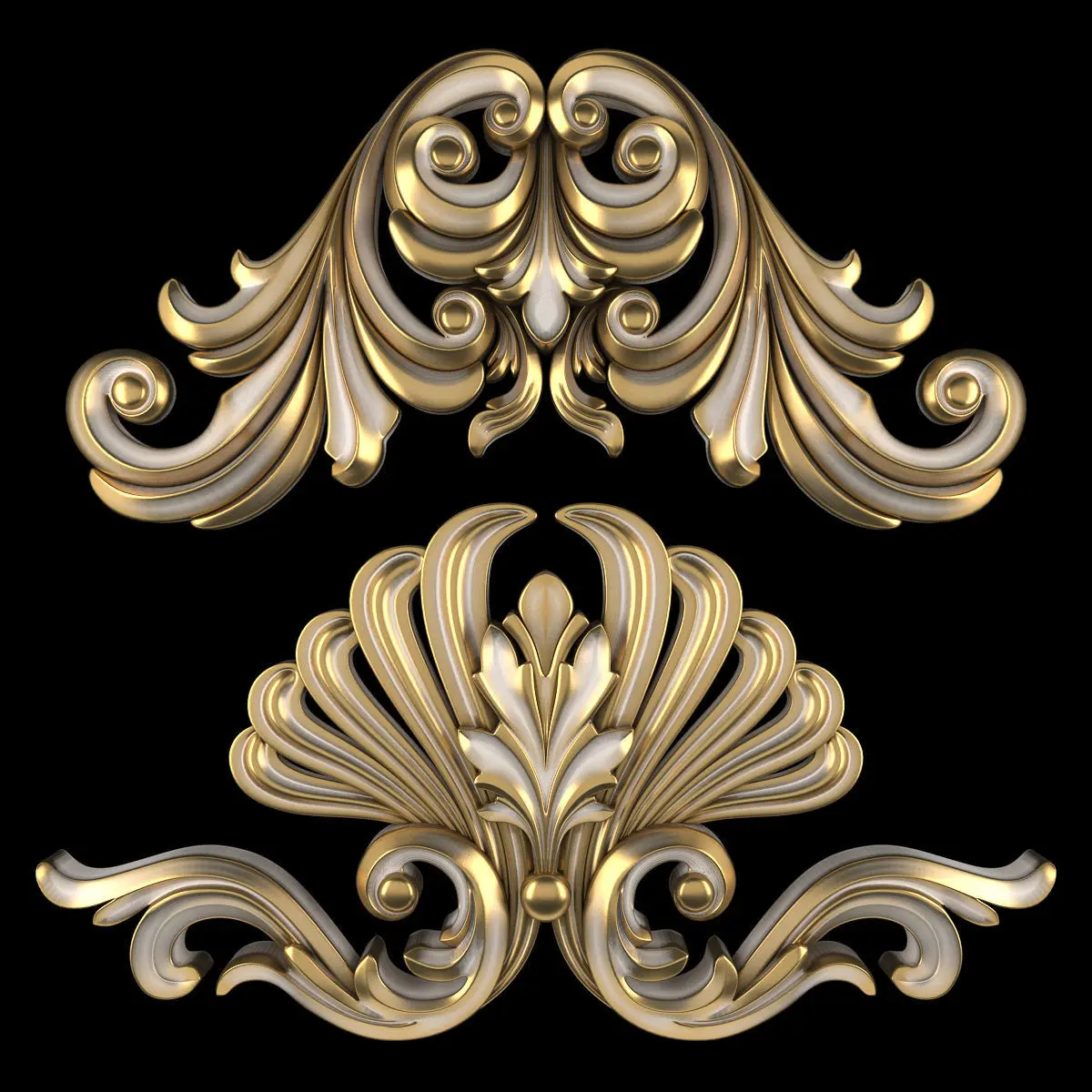 - *Ornament modeling is done with 3D Max software- -Material processing is done with two rendering engines : Corona and vray- *Is the 2016 project file version- *Files in the project: 3dsmax + Corona-3dsmax + Vray +Obj + Mtl- Name: Ornament 74- Version: 2016- Units: Centimeters- Dimension:68*36*5CM- Reset XForm: Yes- Formats: 3Ds Max 2016 - Vray + Corona- Poly: 104/136- Vertex: 108/015- - 3 Mtl : Gold + Gypsum + Blend