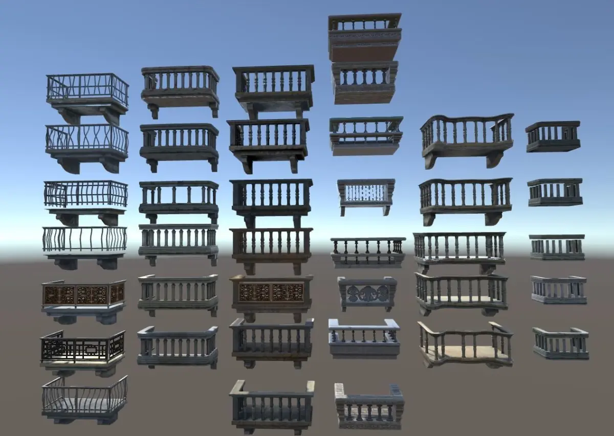 Collection of 38 balcony prefabs ideal for your downtown city or historical city scenes!