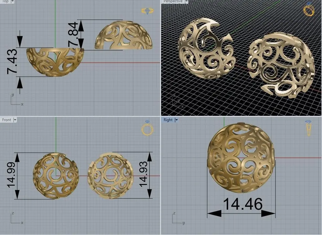 Ornament ball earring 4503D print model This model is ready for 3d printing and manufacturing. We can adjust any size, parameters and details as you want.