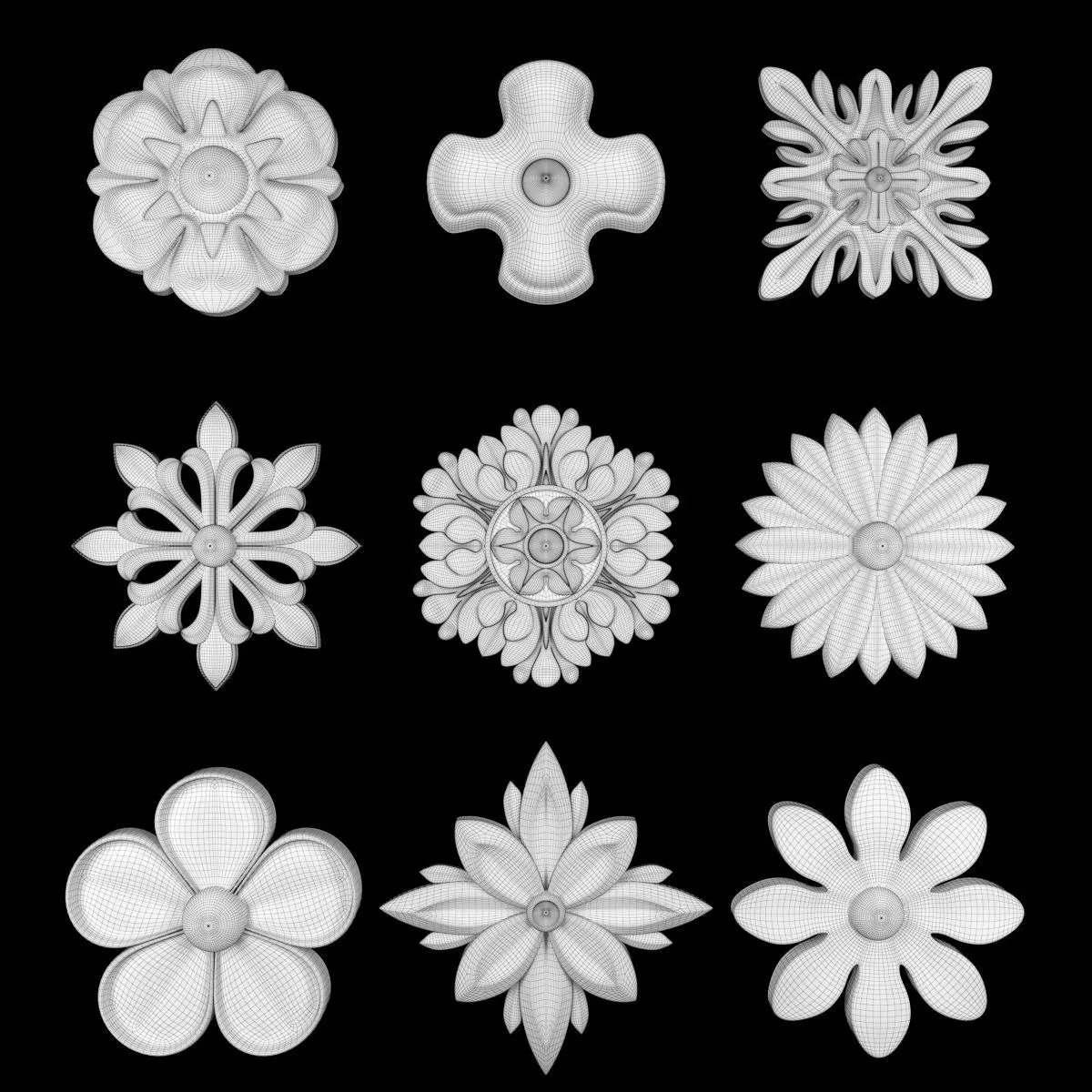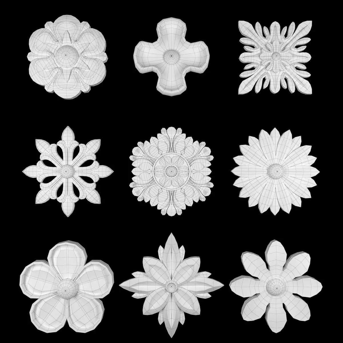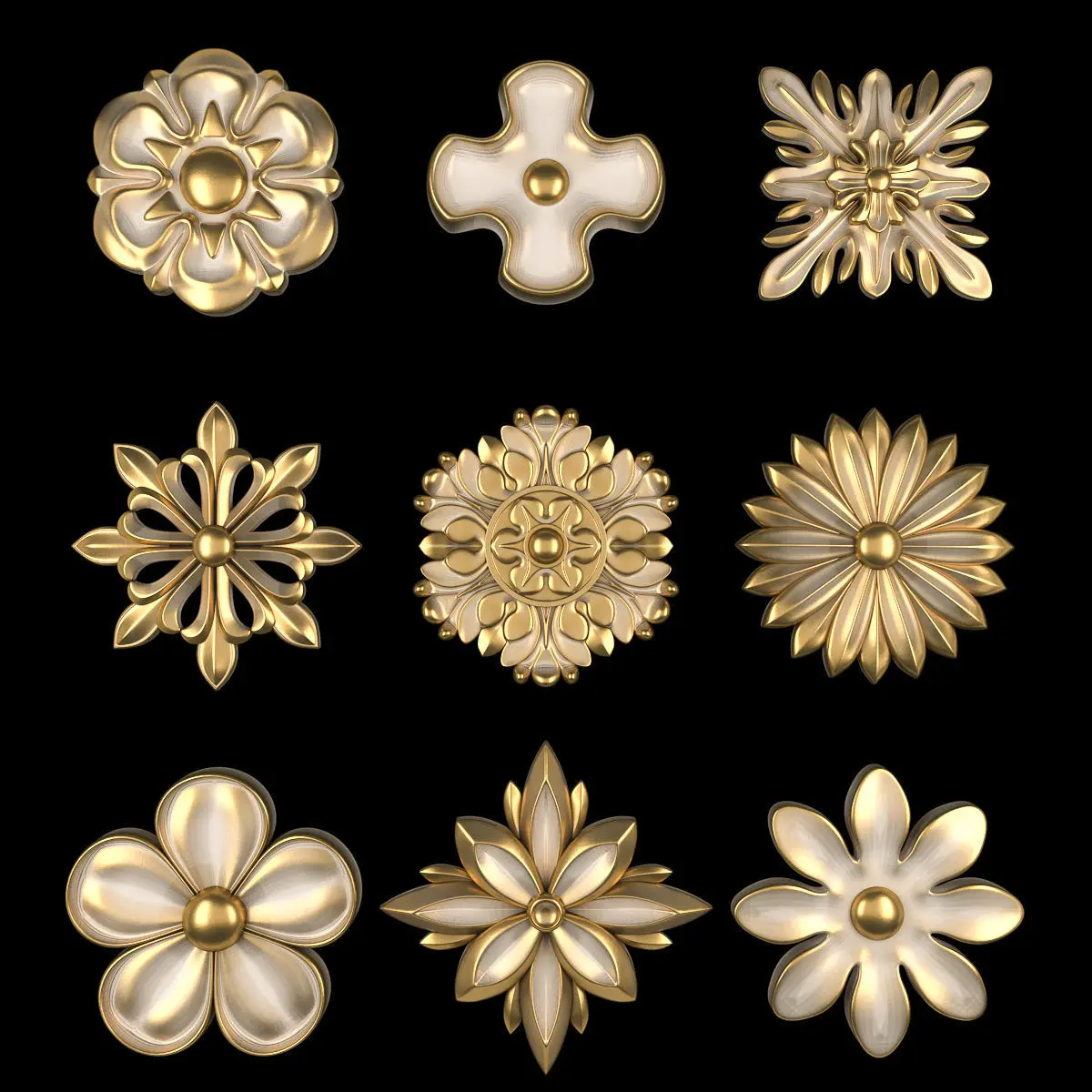 - *Ornament modeling is done with 3D Max software- -Material processing is done with two rendering engines : Corona and vray- *Is the 2016 project file version- *Files in the project: 3dsmax + Corona-3dsmax + Vray +Obj + Mtl- Name: Ornament Element Pack 08- Version: 2016- Units: Centimeters- Dimension:17*17*2CM- Reset XForm: Yes- Formats: 3Ds Max 2016 - Vray + Corona- Poly: 178/716- Vertex: 184/799- - 3 Mtl : Gold + Gypsum + Blend