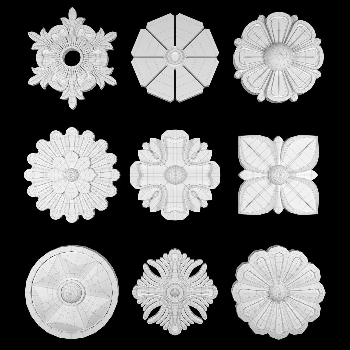 - *Ornament modeling is done with 3D Max software- -Material processing is done with two rendering engines : Corona and vray- *Is the 2016 project file version- *Files in the project: 3dsmax + Corona-3dsmax + Vray +Obj + Mtl- Name: Ornament Element Pack 09- Version: 2016- Units: Centimeters- Dimension:20*20*2CM- Reset XForm: Yes- Formats: 3Ds Max 2016 - Vray + Corona- Poly: 160/960- Vertex: 166/332- - 3 Mtl : Gold + Gypsum + Blend