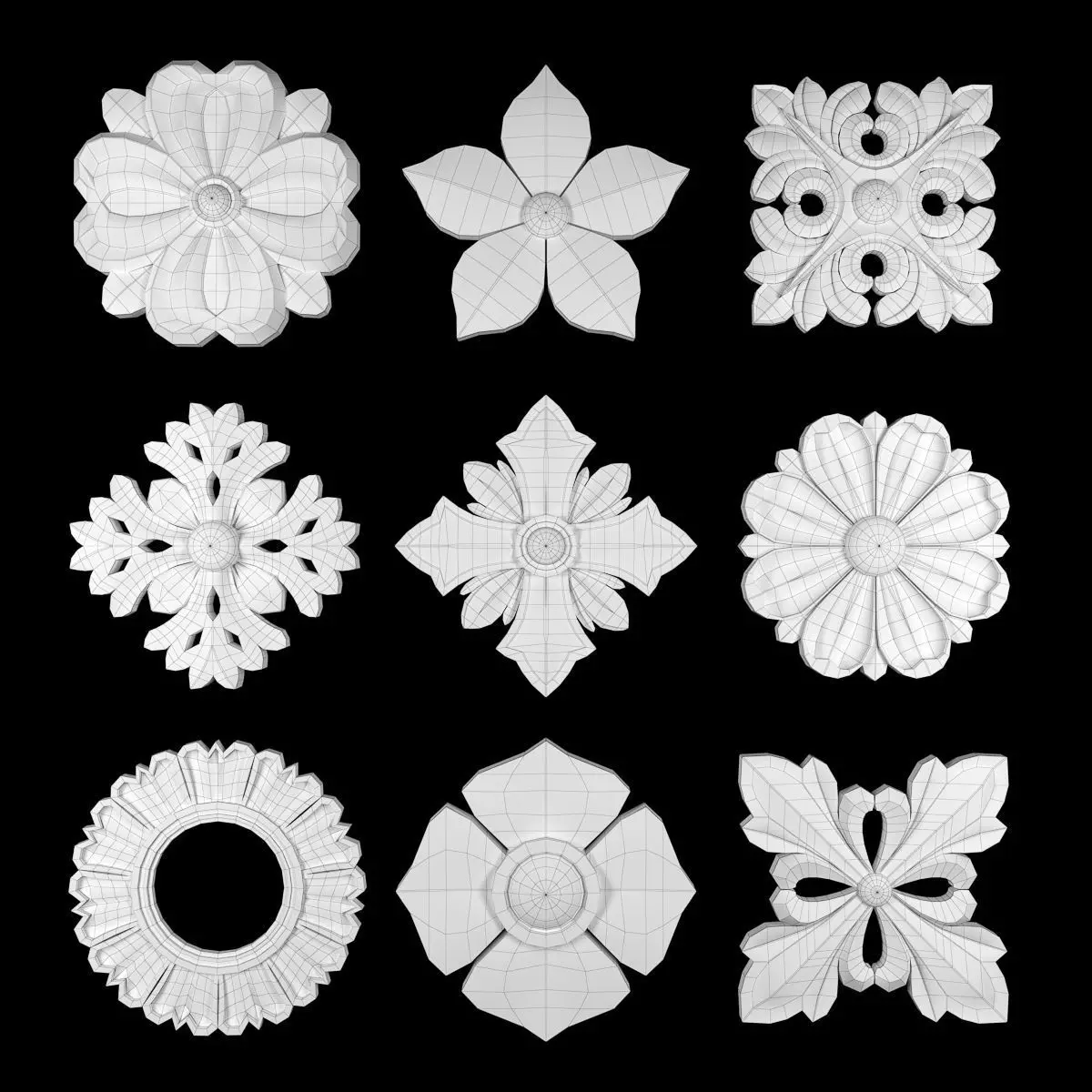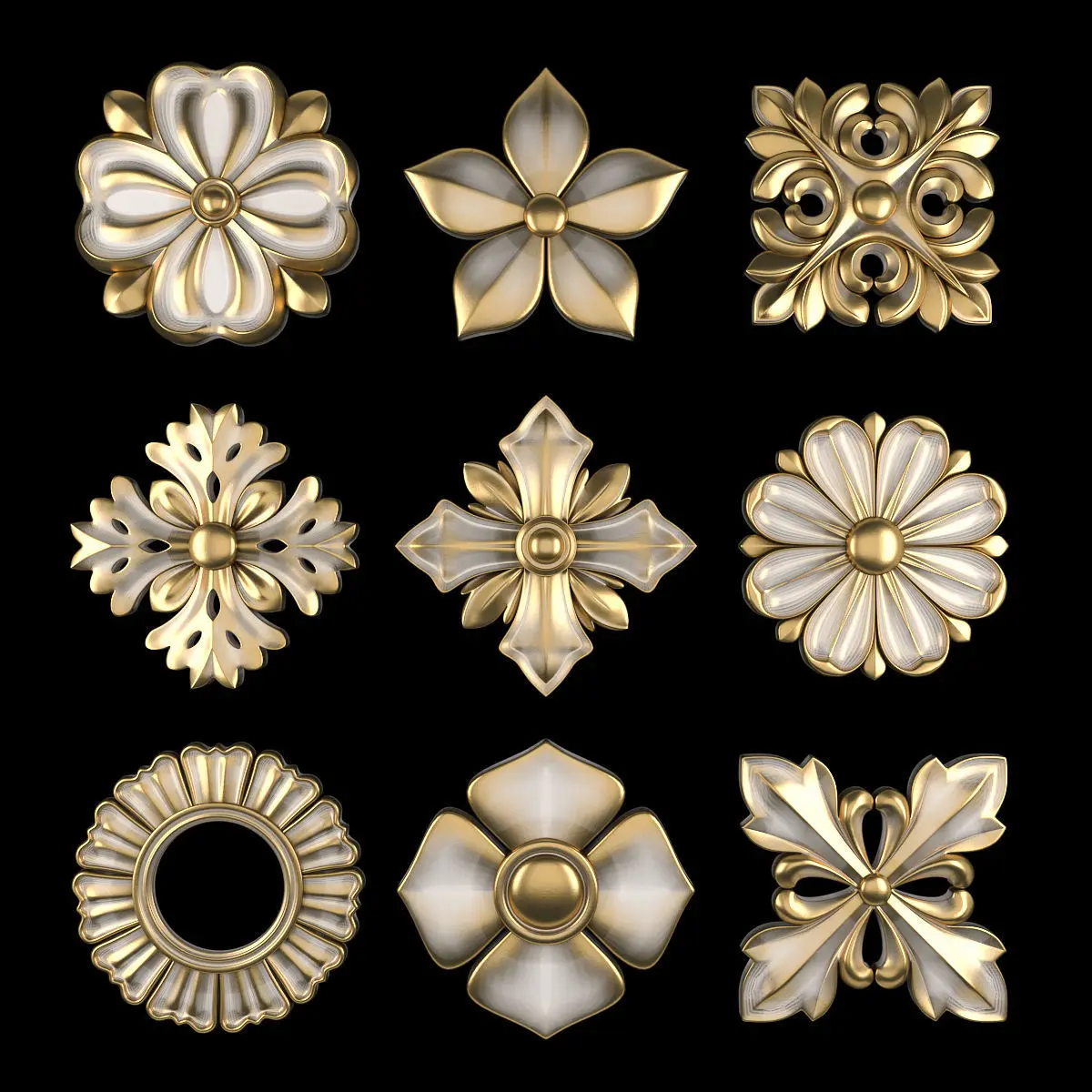 - *Ornament modeling is done with 3D Max software- -Material processing is done with two rendering engines : Corona and vray- *Is the 2016 project file version- *Files in the project: 3dsmax + Corona-3dsmax + Vray +Obj + Mtl- Name: Ornament Element Pack 10- Version: 2016- Units: Centimeters- Dimension:19*19*2CM- Reset XForm: Yes- Formats: 3Ds Max 2016 - Vray + Corona- Poly: 156/940- Vertex: 163/167- - 3 Mtl : Gold + Gypsum + Blend