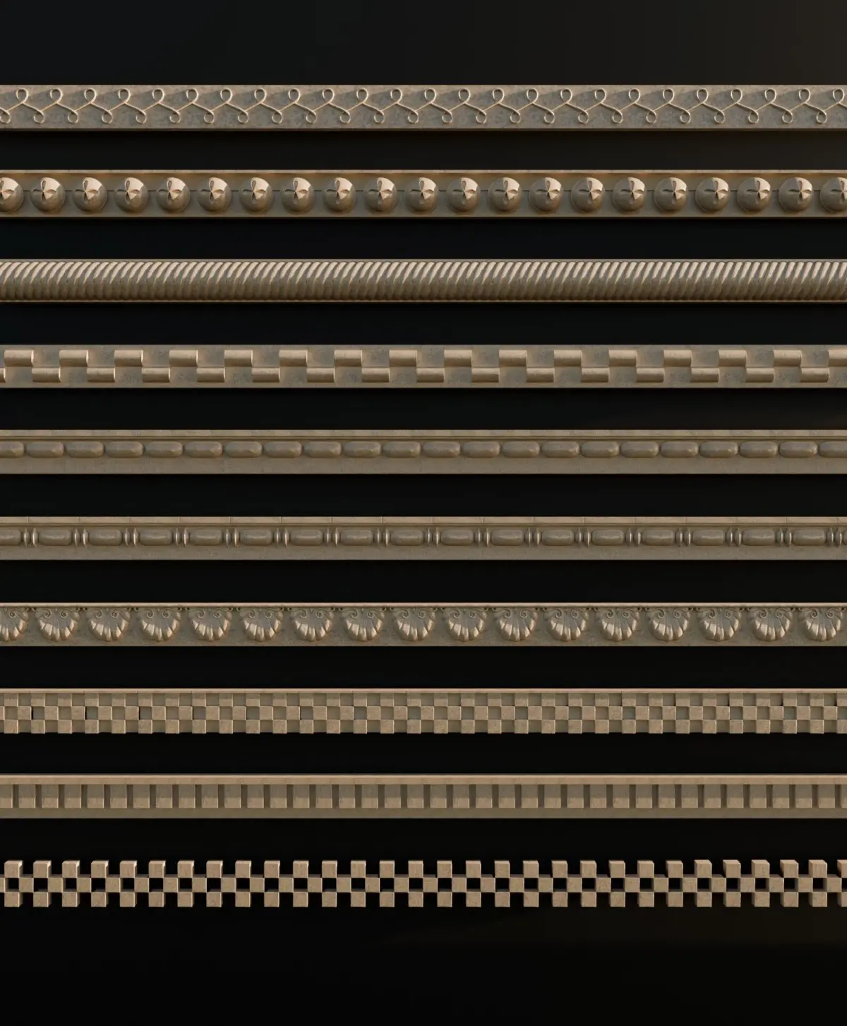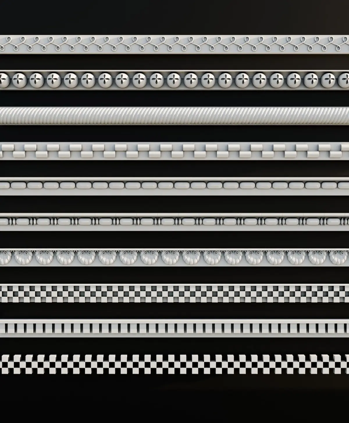 Ornament Pack Vol 15The ornament pack contains 10 decorative ornaments, each with a properly created UV map and designed to be tilable. This allows you to use them with the Array modifier in Blender or similar options in other 3D software: