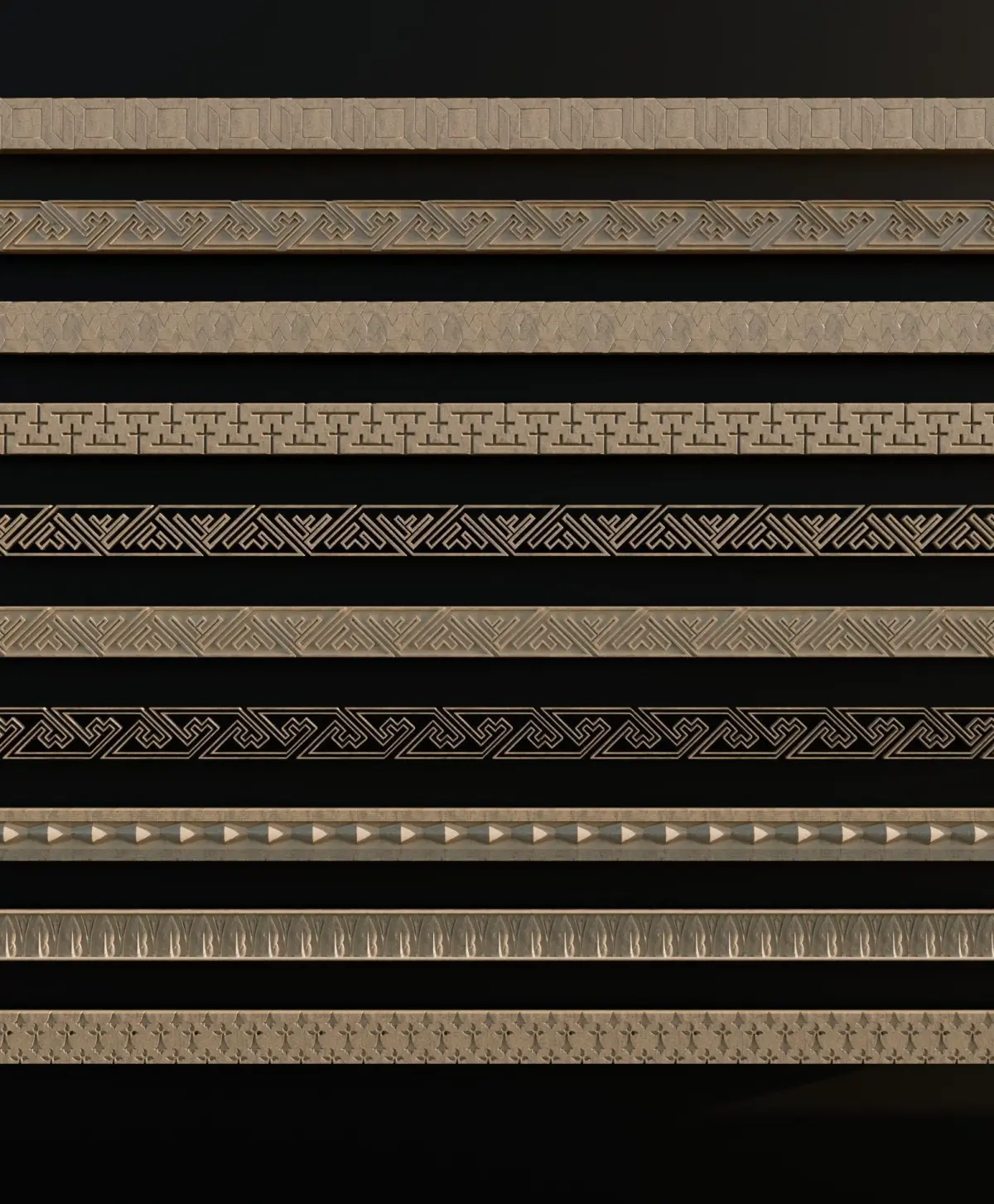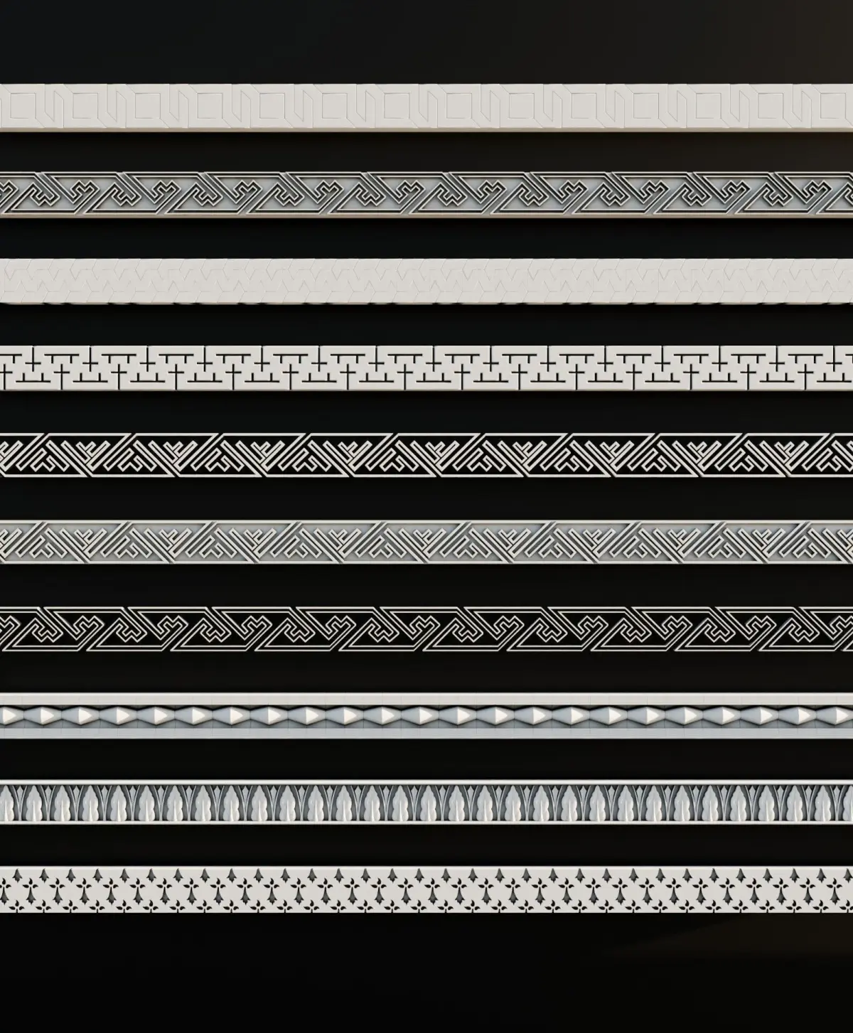 Ornament Pack Vol 21The ornament pack contains 10 decorative ornaments, each with a properly created UV map and designed to be tilable. This allows you to use them with the Array modifier in Blender or similar options in other 3D software: