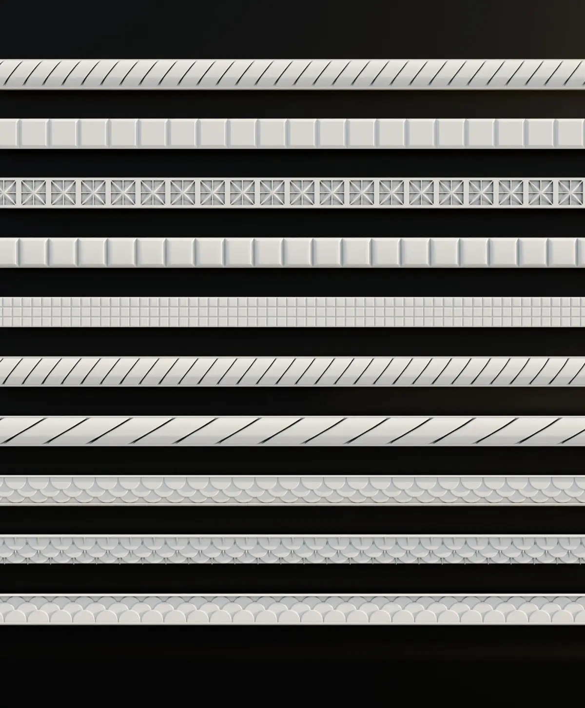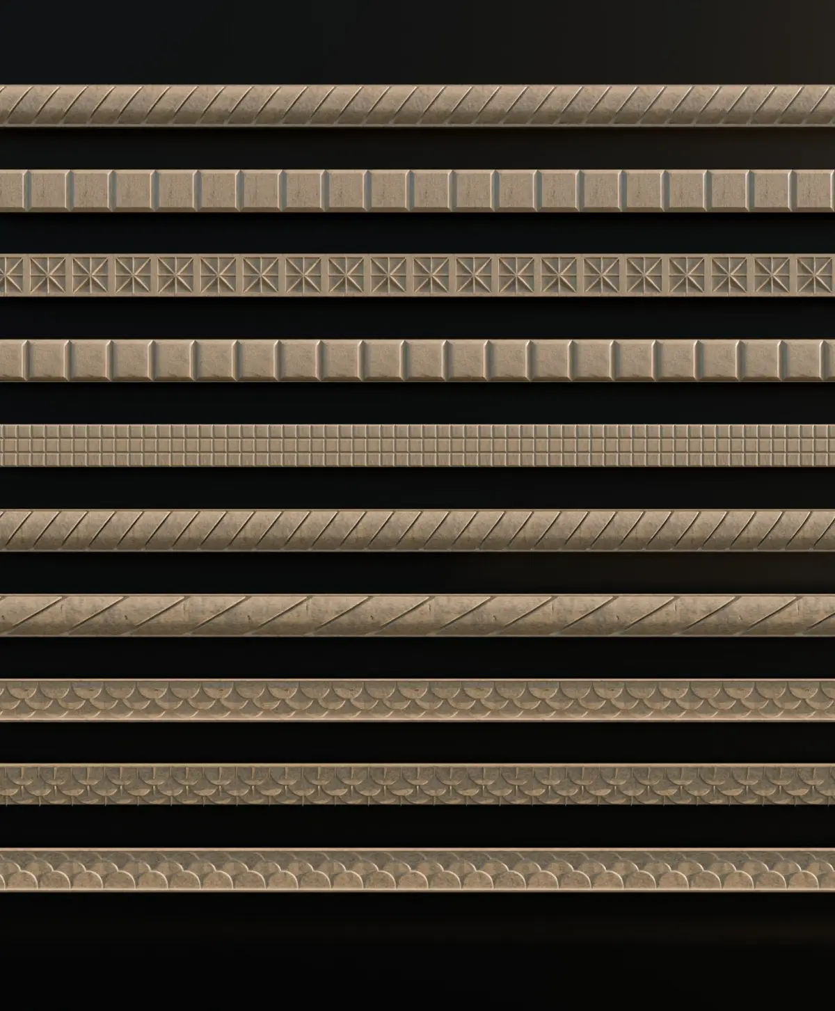 Ornament Pack Vol 6The ornament pack contains 10 decorative ornaments, each with a properly created UV map and designed to be tilable. This allows you to use them with the Array modifier in Blender or similar options in other 3D software: