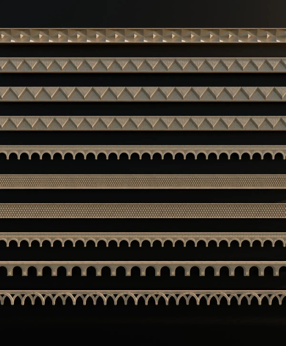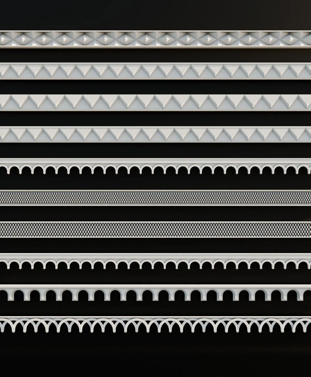 Ornament Pack Vol 8The ornament pack contains 10 decorative ornaments, each with a properly created UV map and designed to be tilable. This allows you to use them with the Array modifier in Blender or similar options in other 3D software: