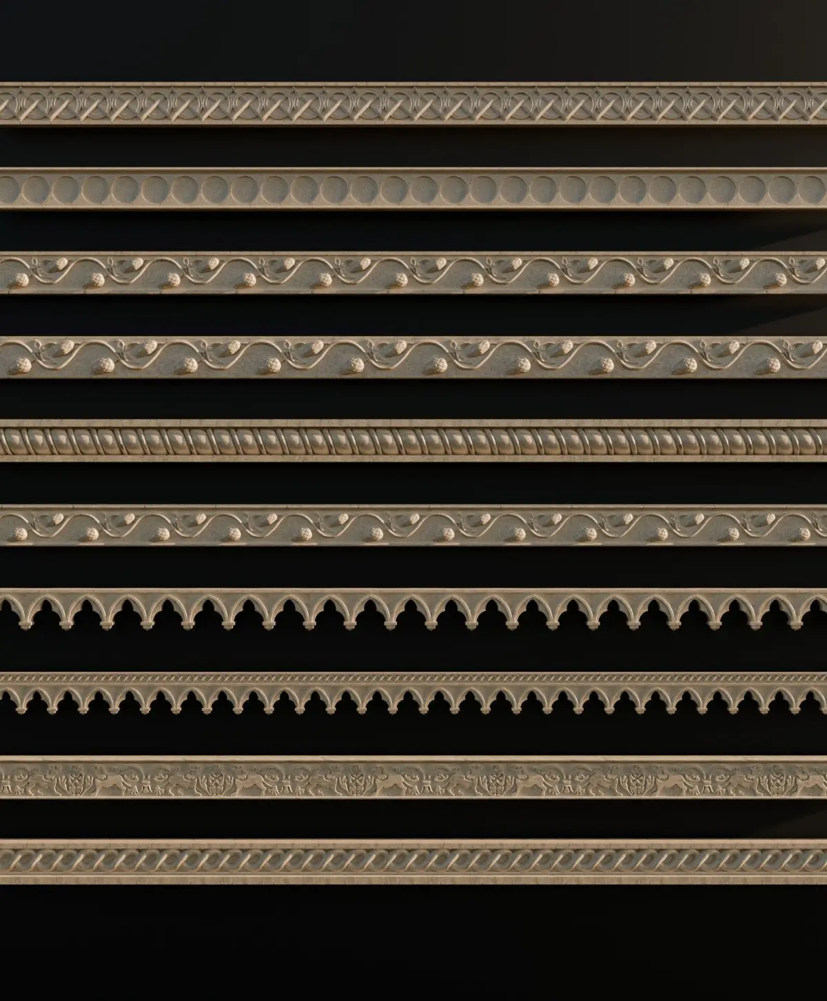 Ornament Pack Vol 9The ornament pack contains 10 decorative ornaments, each with a properly created UV map and designed to be tilable. This allows you to use them with the Array modifier in Blender or similar options in other 3D software: