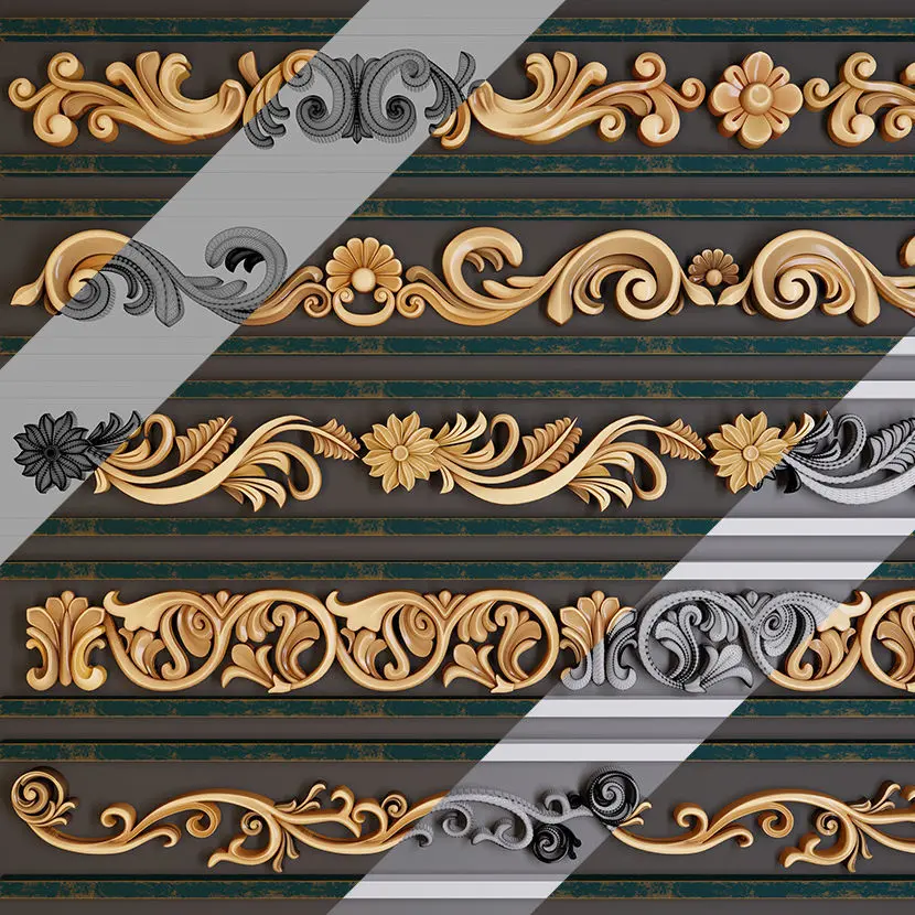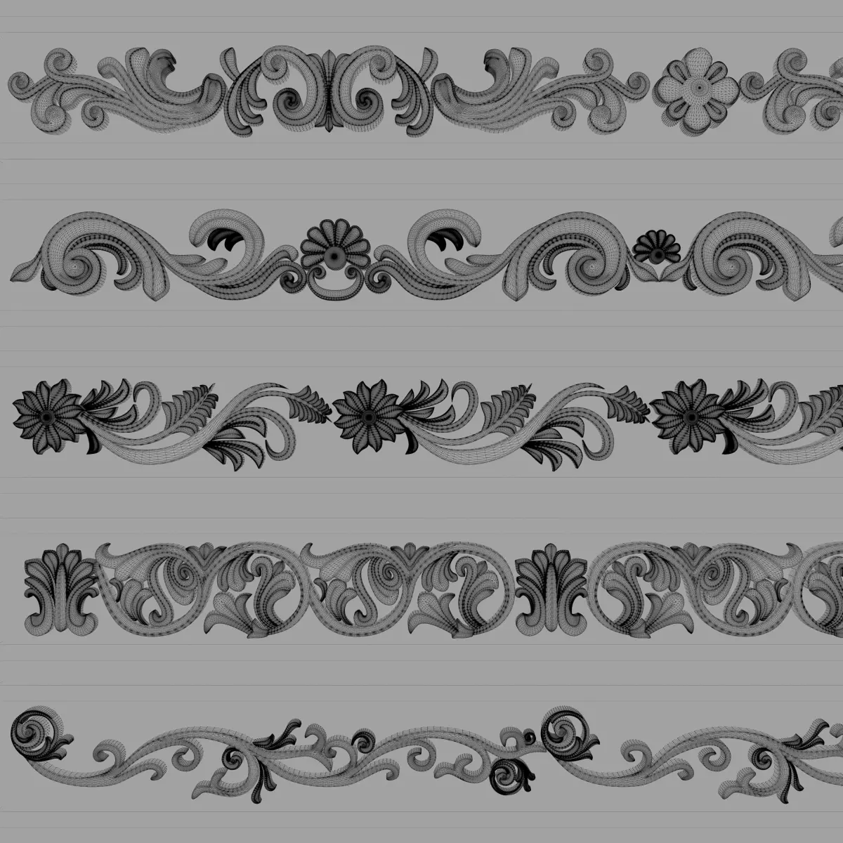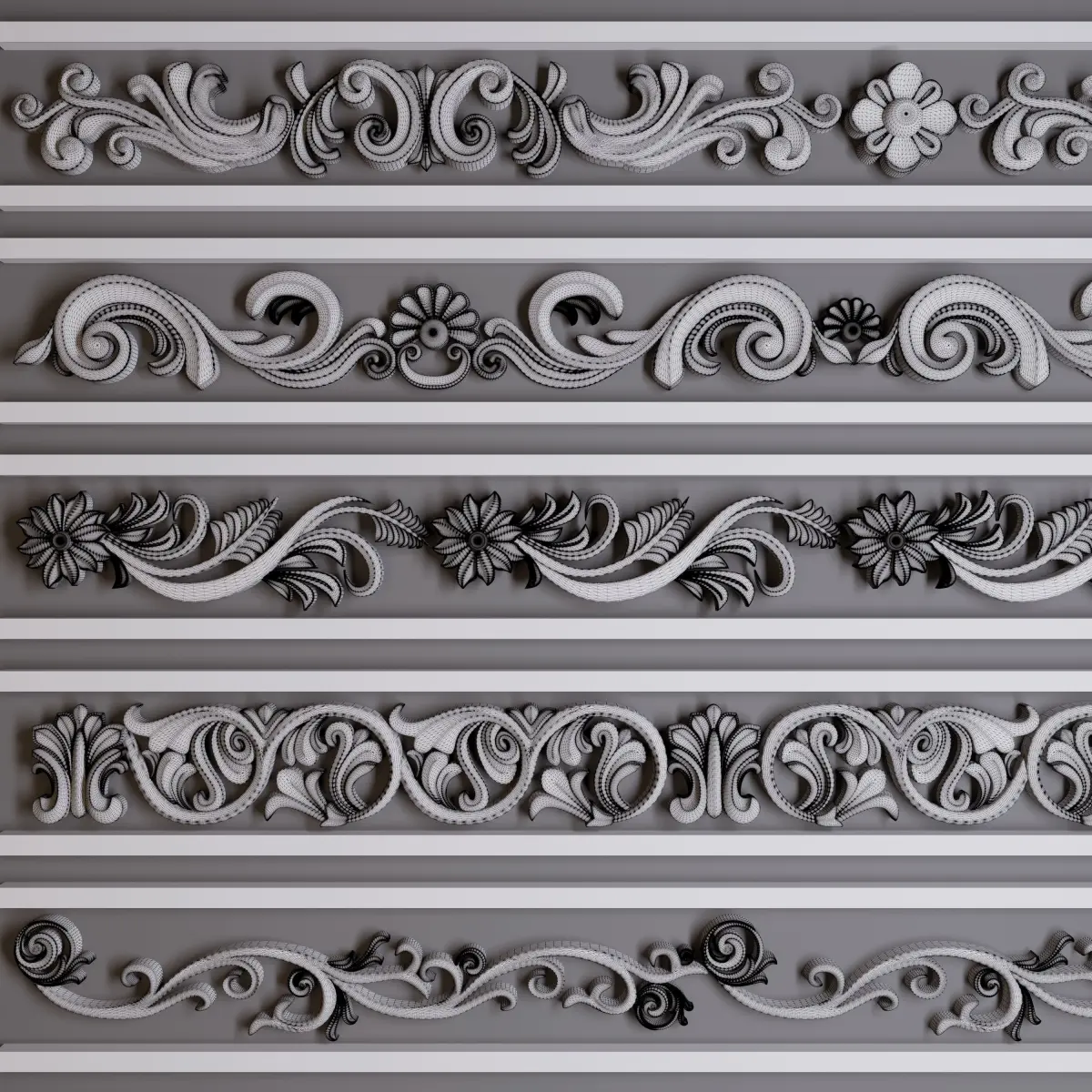 This Product includes 5 TrimOrnaments for use any 3d software (3dmax, maya, blender, C4D, ...). There are 5 Previews.3DMax files saved 3dmax 2018 version.The fbx file is also available.There are also models in Png and Mtl and BMP format.