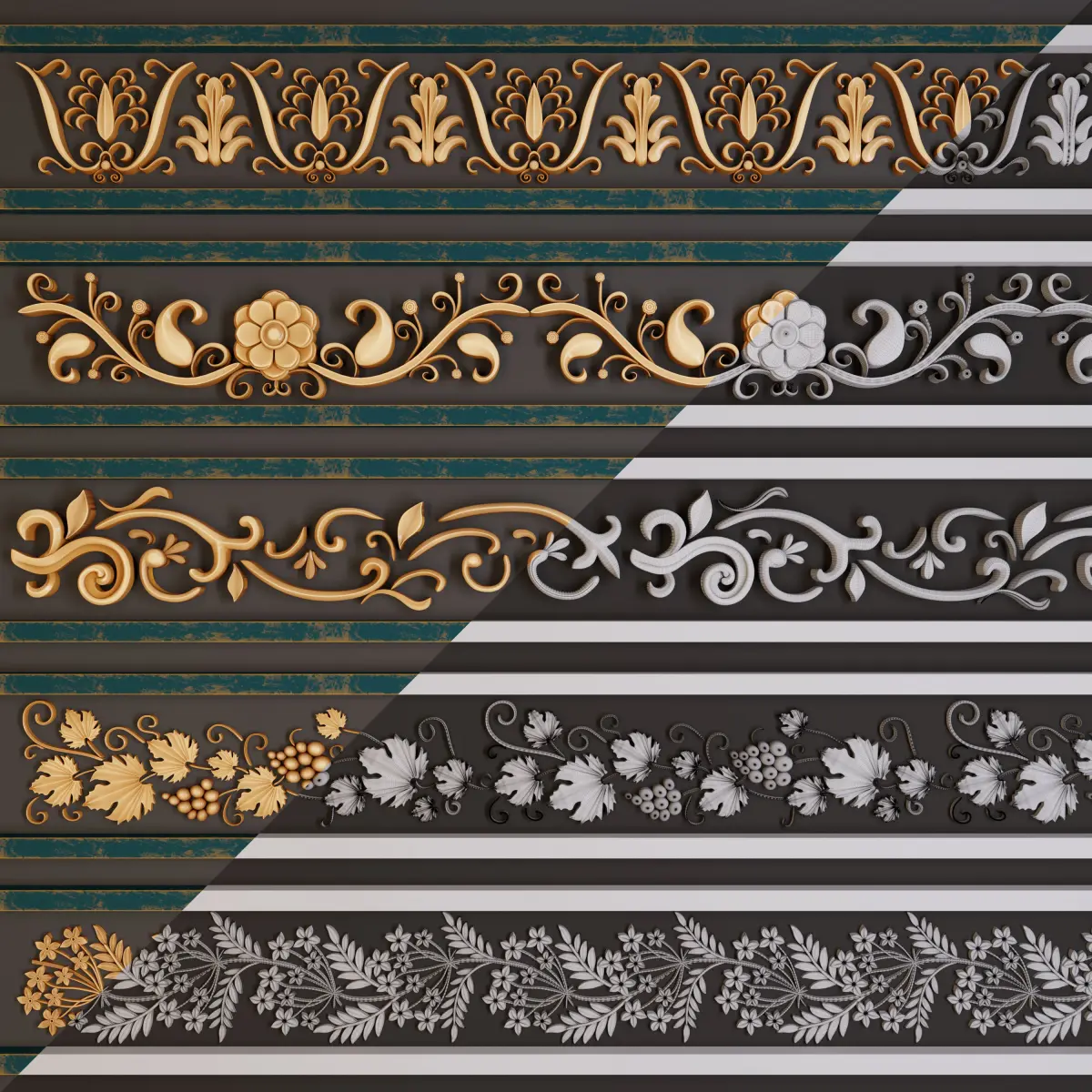 5 Ornament Trim Brushes + Alphas + 3D Model