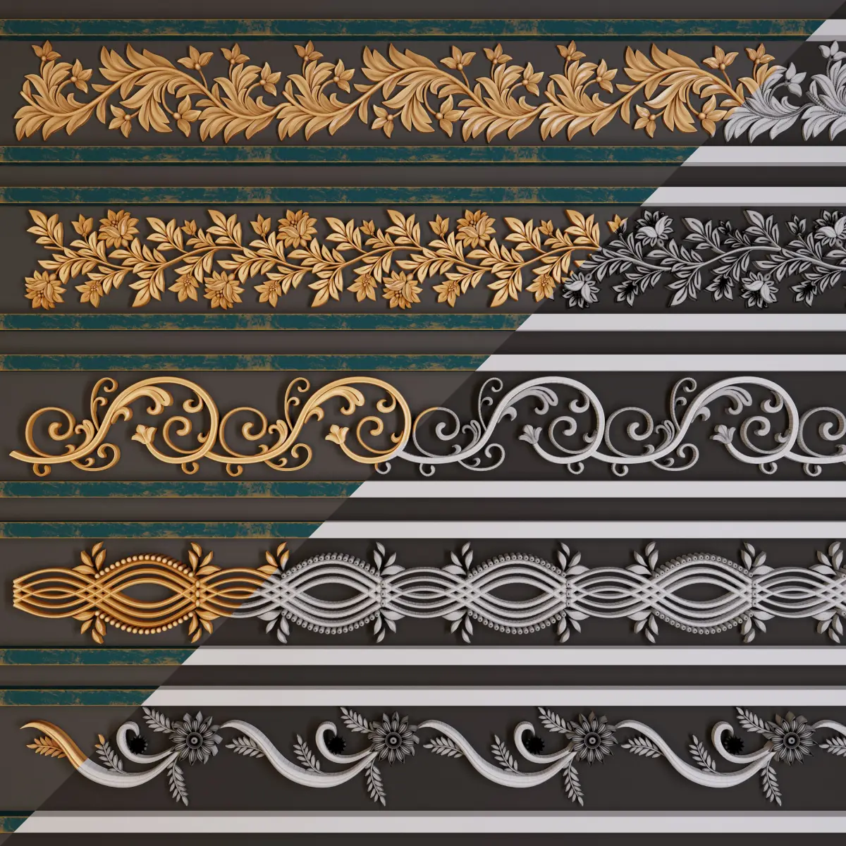 5 Ornament Trim Brushes + Alphas + 3D Model