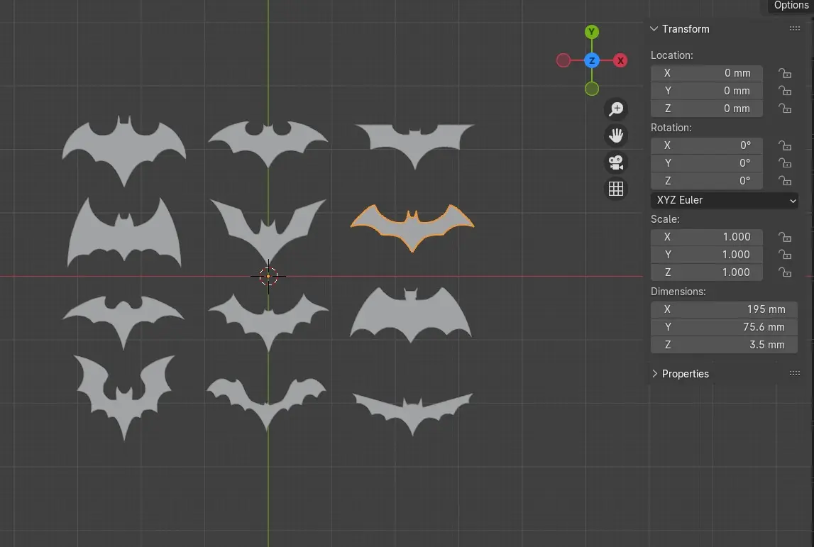Pack of 12 ornamental bats especially for Halloween decoration. The size of the models varies between 195mm wide, 80mm long and 3.5mm high. The models are correctly scaled and the normal ones are correctly placed.