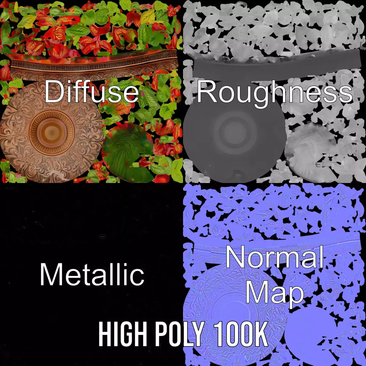 This ornamental clay planter model is perfect for adding a touch of elegance to any digital environment. The intricate design and vibrant plant leaves make it ideal for architectural visualizations, games, and interior design projects. Each model has 3 levels of detail: low-poly (1000 triangles for mobile), middle-poly (10,000 triangles for environment), and high-poly (100,000 triangles), which allows for use in production rendering (such as 3ds max, Maya, Cinema4d, Blender, Vray/Corona/Cycles and all others), game engines (Unity and Unreal compatible), and interactive presentations, providing a choice of detail based on the LOD System principle. The model's textures are PBR, Diffuse, NormalMap, and reflection/roughness/metallic, which are suitable for any modern rendering engine. All models accurately unwrapped and have no overlapping UV. All textures are 4096*4096 in size. Please like and leave a comment if you enjoy this model!