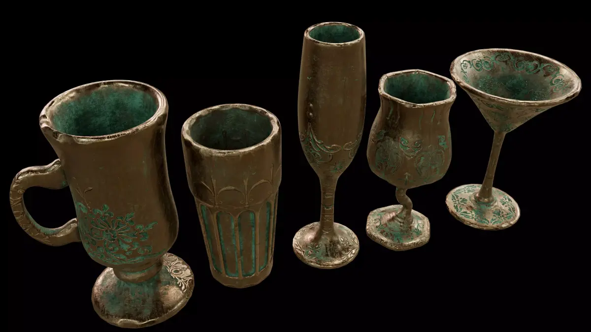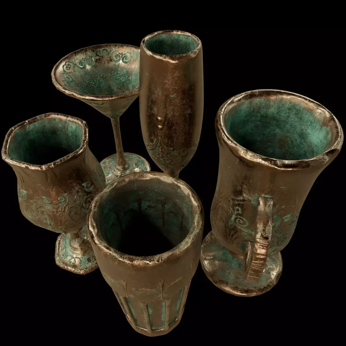 HomeCatalogOrnamental Patinated Bronze Glasses Free 3D model