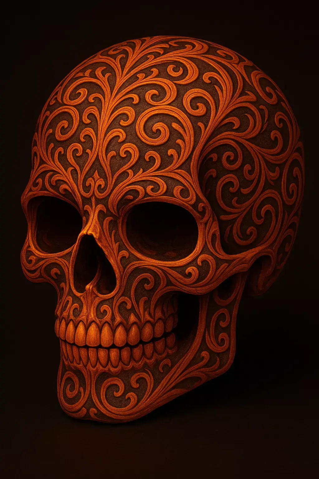 Celebrate the spirit of Halloween and Día de los Muertos with this beautifully detailed 3D printable skull model.This ornamental skull features intricate carved patterns inspired by traditional sugar skull designs, blending elegance and mystery. Its swirling motifs and smooth surface make it perfect for both artistic and decorative purposes.