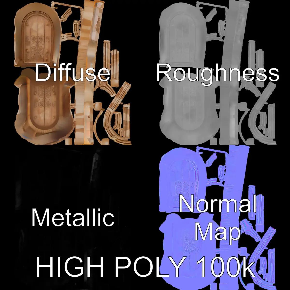 The model includes PBR textures, Diffuse, NormalMap, and Reflection/Roughness/Metallic maps, all at 4096x4096 resolution, suitable for modern rendering engines. All models are accurately unwrapped with no overlapping UVs, ensuring optimal performance and visual fidelity.