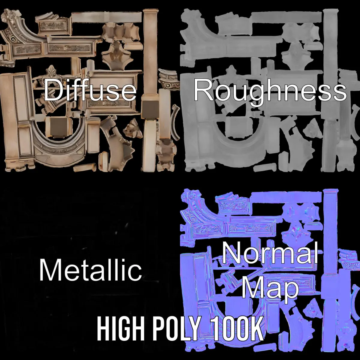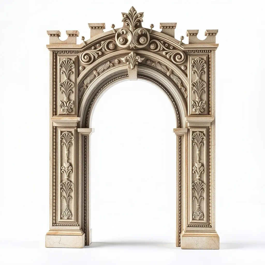 This 3D model pack features an ornate archway adorned with intricate decorative detailing, suitable for various architectural visualizations. Each model has 3 levels of detail: low-poly (1000 triangles for mobile), middle-poly (10,000 triangles for environment), and high-poly (100,000 triangles), which allows for the use of this model in production rendering (such as 3ds Max, Maya, Cinema 4D, Blender, Vray/Corona/Cycles, and all others), game engines (Unity and Unreal compatible), and interactive presentations, providing a choice of detail based on the LOD System principle. Ideal for use in historical reconstructions, architectural visualization, or video game environments. The model's textures are PBR, Diffuse, NormalMap, and reflection/roughness/metallic, which are suitable for any modern rendering engine. All models accurately unwrapped and have no overlapping UV. All textures are 4096x4096 in size. The first image is the reference used for creating the 3D model. It is important to carefully evaluate the quality of the model by examining the preview images that display the topology and polygonal mesh. These previews (WIRE and WEB 3D Preview) clearly demonstrate how accurately the model matches the original reference and how well the geometry has been executed. If you liked the model, please give it a thumbs up and leave a comment!
