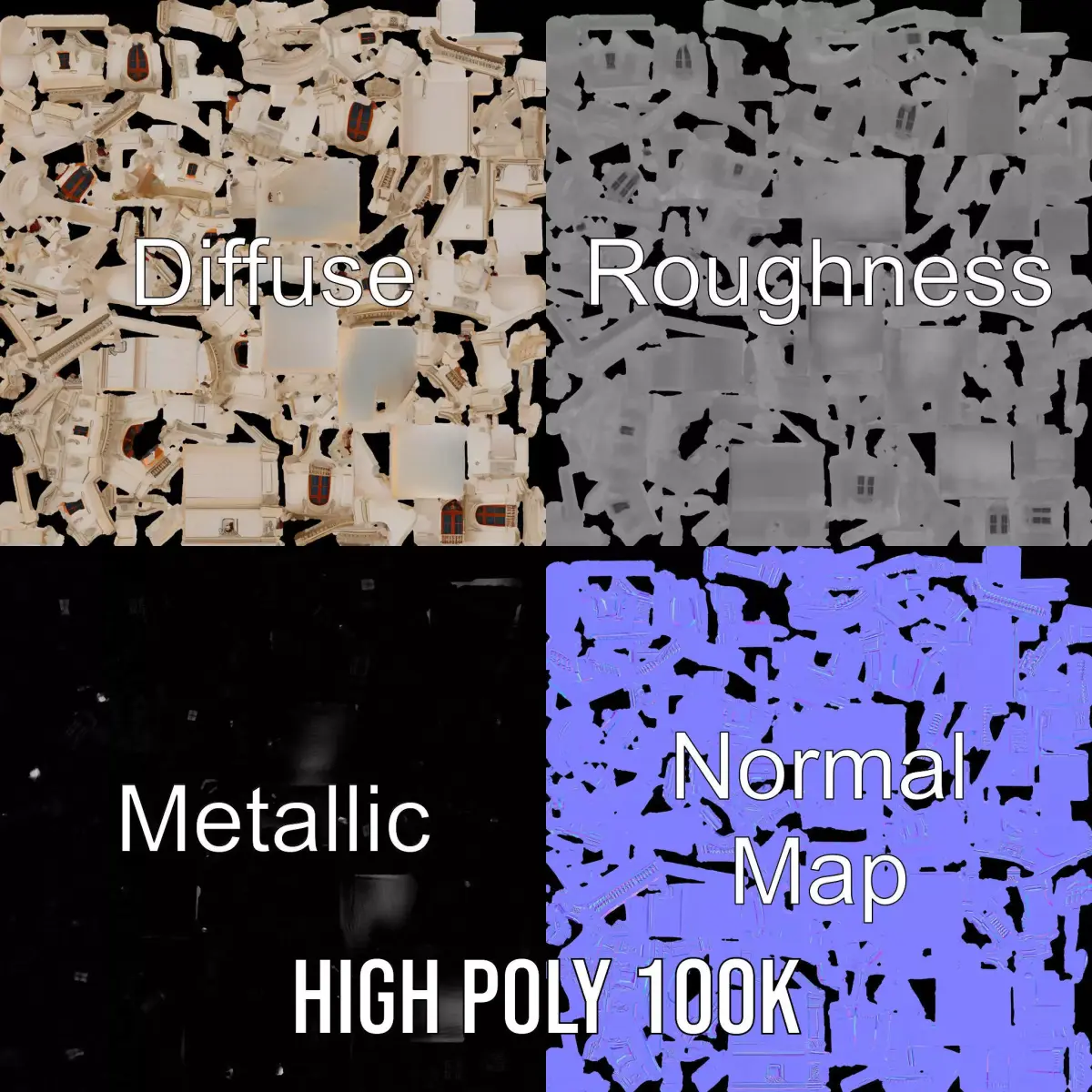 The Ornate Baroque Mansion model pack offers a beautifully detailed architectural model, capturing the grandeur of Baroque-style design. Each model has 3 levels of detail: low-poly (1000 triangles for mobile), middle-poly (10,000 triangles for environment), and high-poly (100,000 triangles), which allows for the use of this model in production rendering (such as 3ds Max, Maya, Cinema 4D, Blender, Vray/Corona/Cycles and all others), game engines (Unity and Unreal compatible), and interactive presentations, providing a choice of detail based on the LOD System principle. Ideal for historical reconstructions, architectural visualization, and virtual reality experiences. The model's textures are PBR, Diffuse, NormalMap, and reflection/roughness/metallic, which are suitable for any modern rendering engine. All models accurately unwrapped and have no overlapping UV. All textures are 4096*4096 in size. Please like and leave a comment for the model if you enjoyed it.