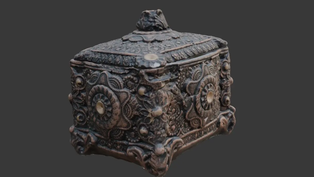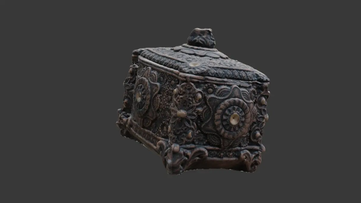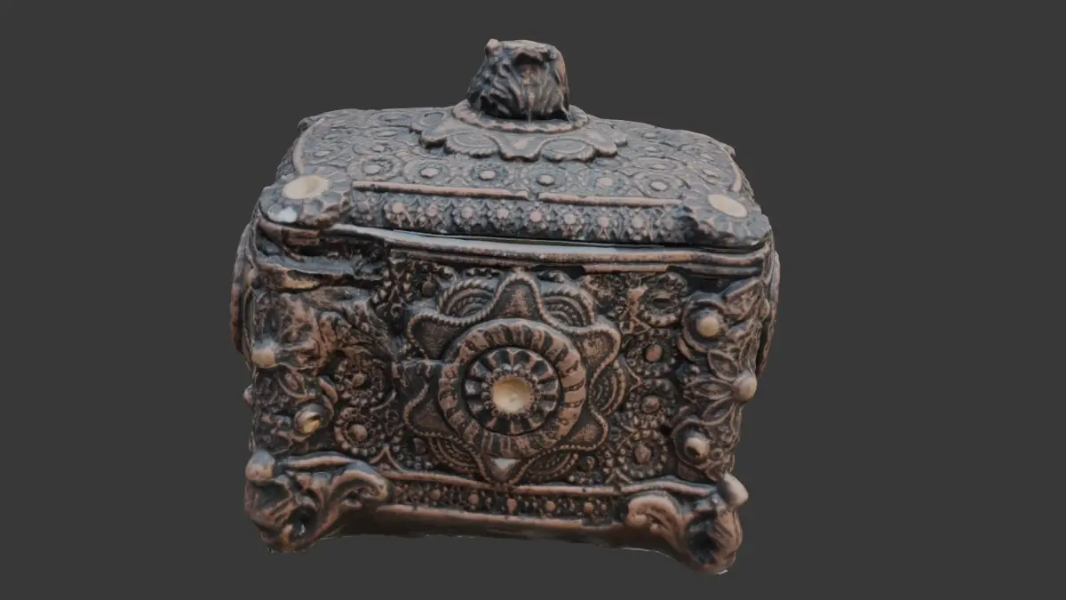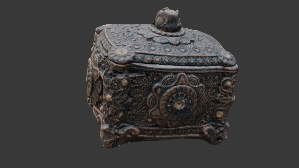 Highly detailed 3D scan of an intricately decorated ornate box with rich patterns and textures. Ideal for historical scenes, fantasy environments, treasure props, or decorative interior visualization. The model is provided in multiple formats (BLEND, FBX, OBJ, GLB, USD, STL) and includes 4K PBR textures for seamless integration in any pipeline.