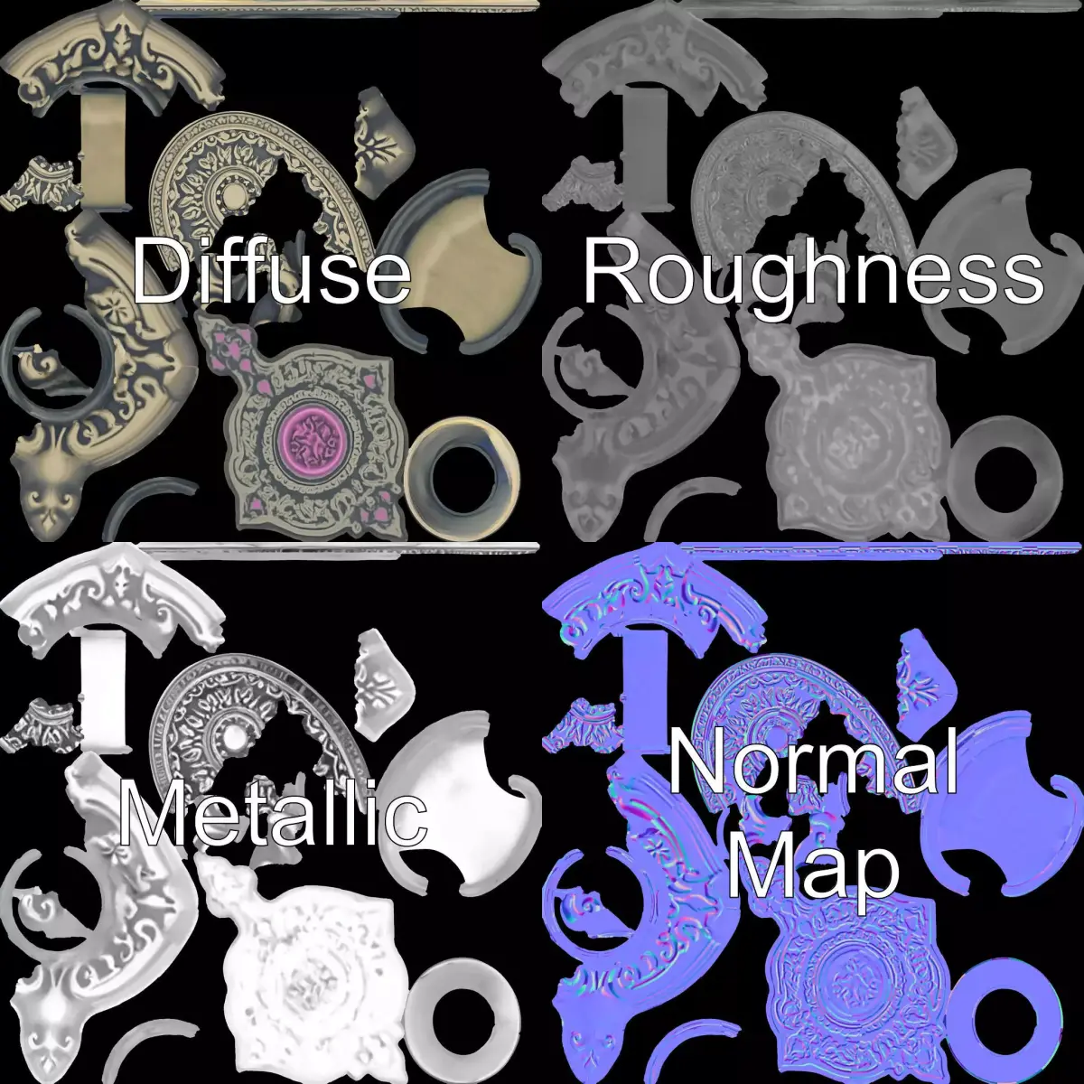 The Ornate Brass Doorknob model pack features a detailed, luxurious doorknob design with intricate patterns and a rich brass finish. Perfect for adding a touch of elegance to architectural visualizations, historical reconstructions, or virtual interiors, this model is versatile and realistic. Each model has 3 levels of detail: low-poly (1000 triangles for mobile), middle-poly (10,000 triangles for environment), and high-poly (100,000 triangles), which allows for the use of this model in production rendering (such as 3ds Max, Maya, Cinema4D, Blender, Vray/Corona/Cycles and all others), game engines (Unity and Unreal compatible), and interactive presentations, providing a choice of detail based on the LOD system principle.