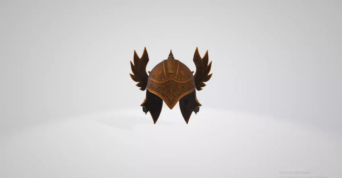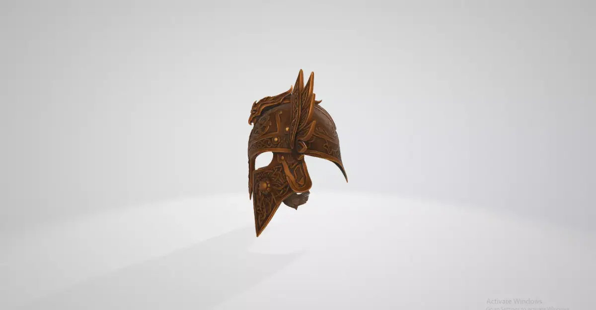 An ornate bronze winged helmet crafted with exceptional artistry, showcasing intricate Celtic knotwork that weaves across its surface in timeless elegance. The helmet features embossed panels that add depth and texture, reflecting the craftsmanship of ancient warriors and mythic heroes. The bronze wings, gracefully curved from the sides, symbolize freedom and valor, while the polished finish gives it a regal, battle-worn charm. Perfect as a collector’s piece, cosplay accessory, or historical display, this helmet captures the spirit of Celtic mythology and warrior tradition in every meticulous detail.