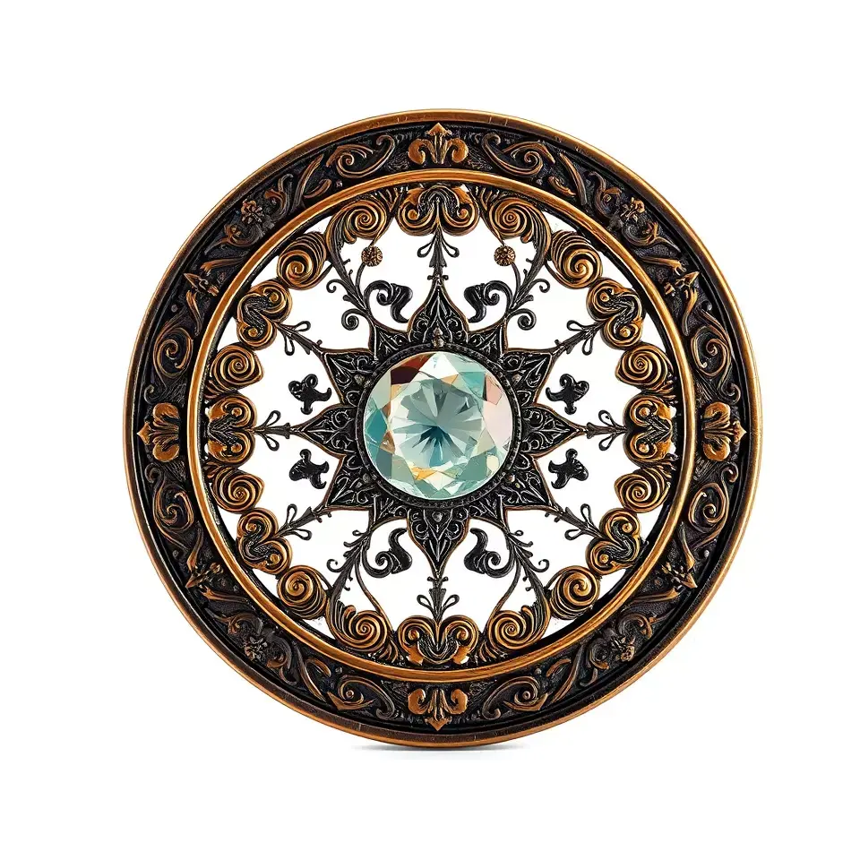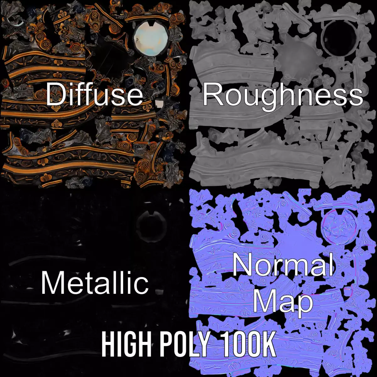 This ornate bronze medallion model pack features intricate scrolling designs surrounding a central gem-like structure, making it perfect for historical or fantasy scenes. Each model has 3 levels of detail: low-poly (1000 triangles for mobile), middle-poly (10,000 triangles for environment), and high-poly (100,000 triangles), allowing for use in production rendering with 3ds Max, Maya, Cinema4D, Blender, V-Ray/Corona/Cycles, game engines (Unity and Unreal compatible), and interactive presentations, providing a choice of detail based on the LOD System principle. Ideal for games, animations, and digital art projects requiring a touch of elegance and historical allure. The model's textures include PBR, Diffuse, NormalMap, and reflection/roughness/metallic, compatible with any modern rendering engine. All models are accurately unwrapped with no overlapping UVs. All textures are 4096*4096 in size. If you enjoy this model, please like and leave a comment!