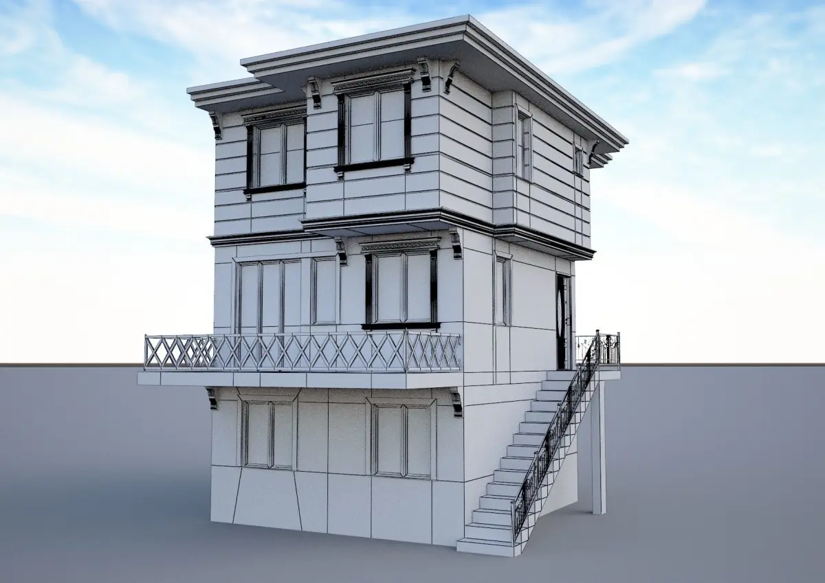 Ornate building 3d model. There are 2 facade drawings. no render scene